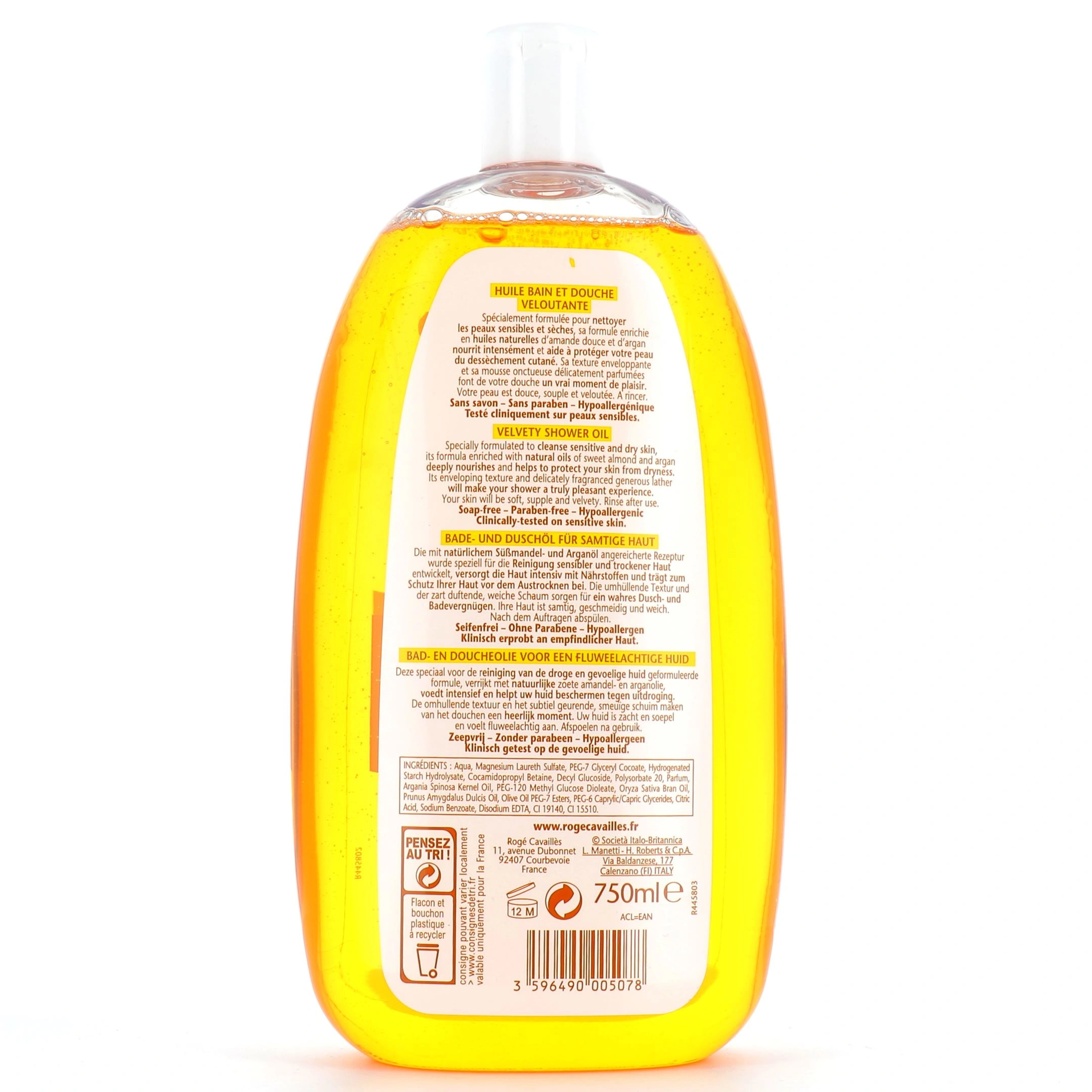 L'huile de douche satinante Cavaillès est concentrée en huile d'argan bio et possède une senteur apaisante de rose, tandis que l'huile de douche veloutante renferme de l'huile d'amande bio et diffuse des notes orientales. Elles offrent un véritable moment de bien-être grâce à leur mousse soyeuse et conviennent aux enfants dès 1 an.
