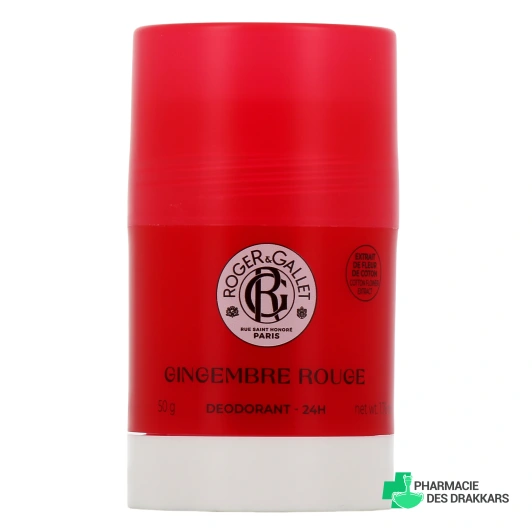 Présentation disponible sur la pharmacie en ligne des Drakkars pour les déodorants 24h Roger et Gallet : stick de 50 g, senteur au choix.