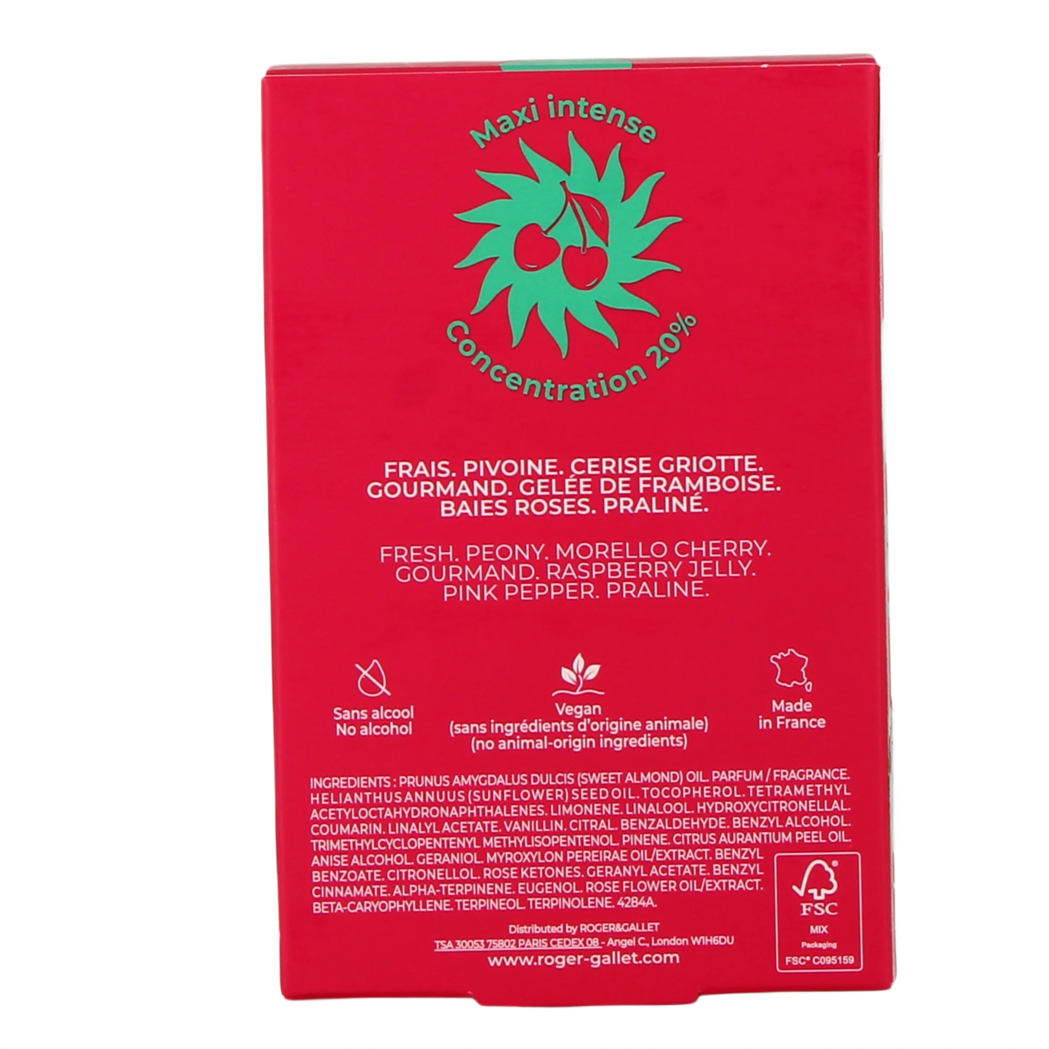 - Roger et Gallet Cherry Marmelade : un sillage fruité et glossy mêlant cerise griotte, gelée de framboise et pivoine fraîche, adouci par un fond boisé ambré aux notes de praline.