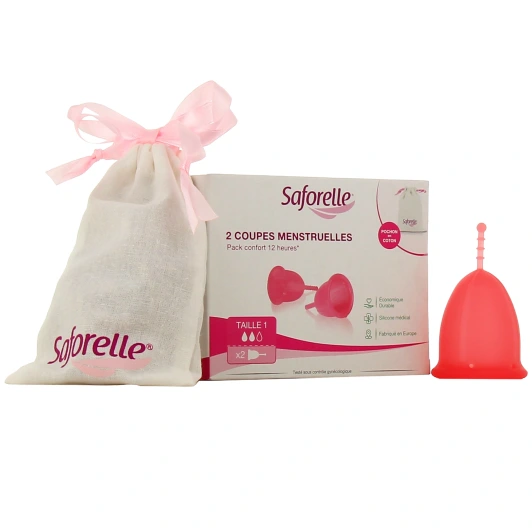 Le Pack Confort 12 heures Saforelle est constitué de 2 coupes menstruelles en silicone platine de grade médical et biocompatible. Une cup peut être portée pendant 6 heures maximum. Le pack comporte également un pochon en coton qui vous permettra d'avoir votre cup de rechange à portée de main en toute discrétion, et de les stocker facilement lorsque vous ne les utilisez pas.