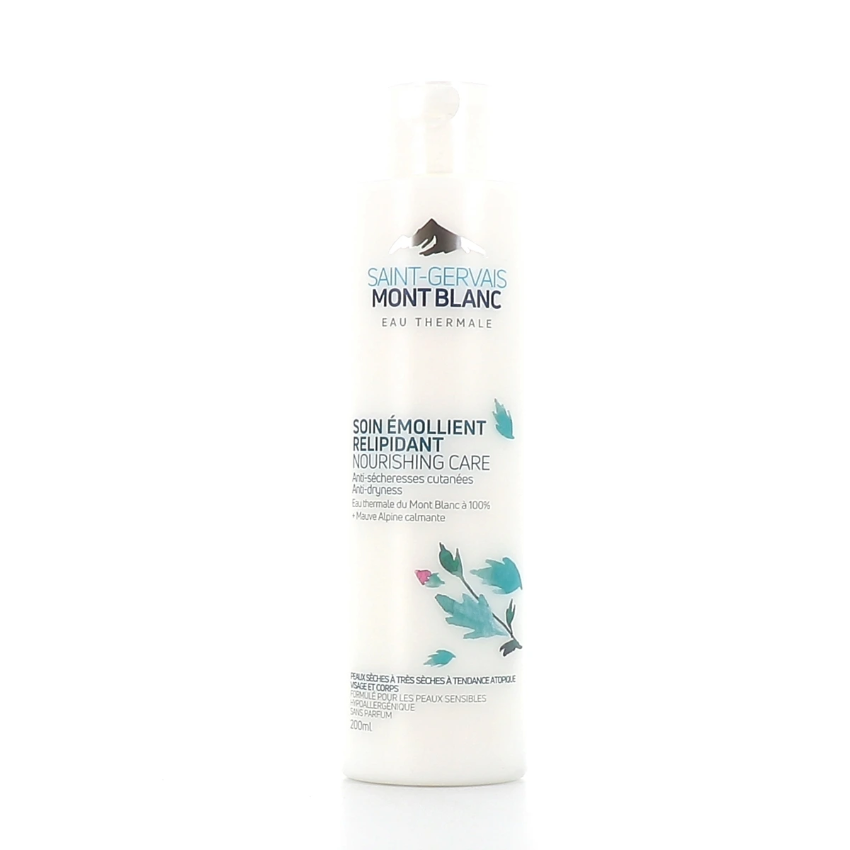 Le Soin émollient relipidant de Saint-Gervais Mont-Blanc a été élaboré à destination des personnes ayant une peau sèche à très sèche afin de leur offrir une solution de qualité pour un apport régulier en agents gras et nourrissants.