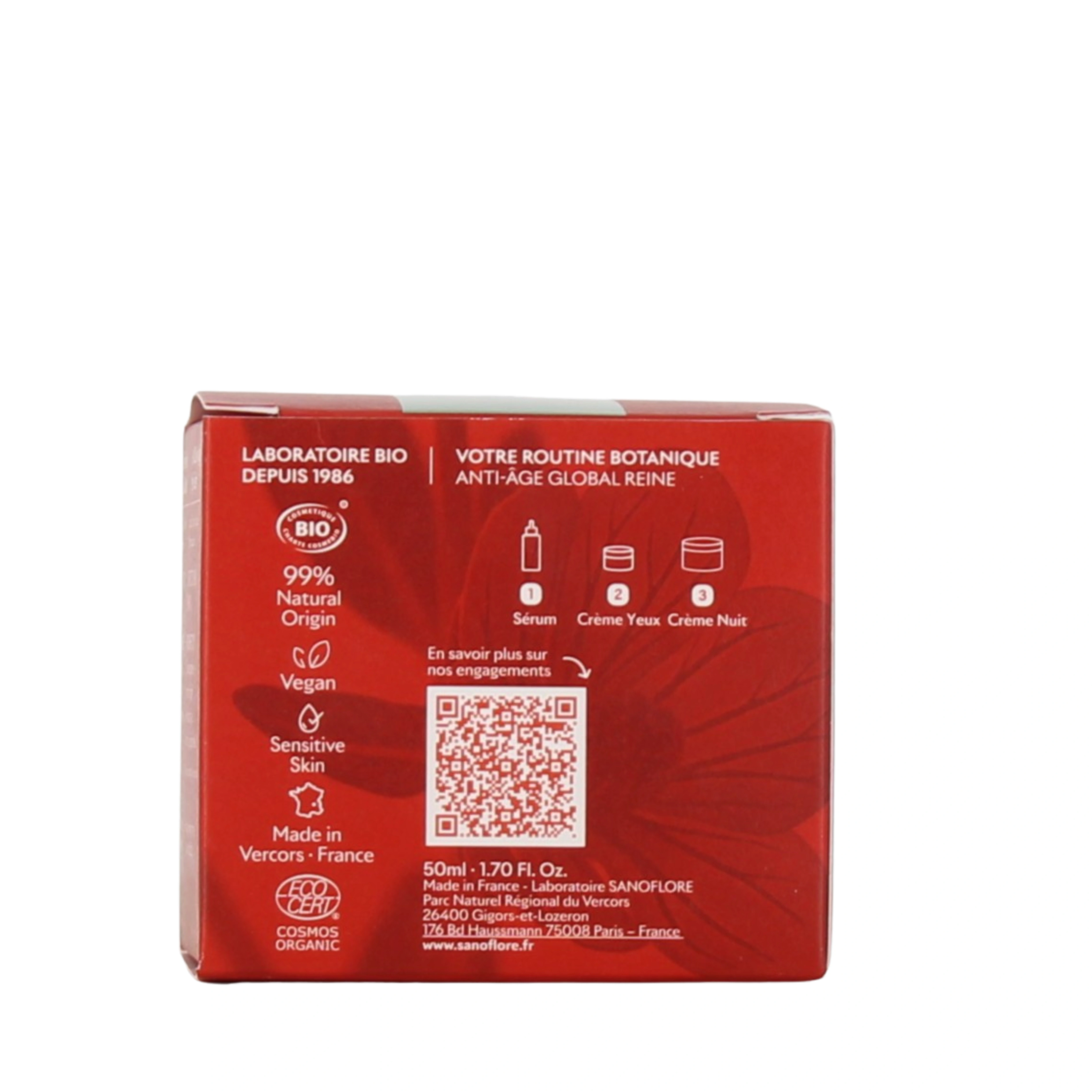 Présentation proposée par notre pharmacie en ligne pour Sanoflore Reine Crème Nuit Anti-Age Global : pot de 50 ml.