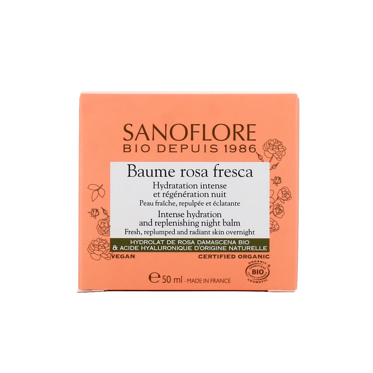 Présentation proposée pour Sanoflore Rosa Fresca Baume Hydratation Intense sur la pharmacie en ligne des Drakkars : Pot de 50 ml