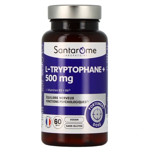 Fortement dosé en tryptophane, un acide aminé essentiel et précurseur de la sérotonine pour l'équilibre émotionnel, ce complément alimentaire Santarome agit sur l'équilibre nerveux et les fonctions psychologiques.