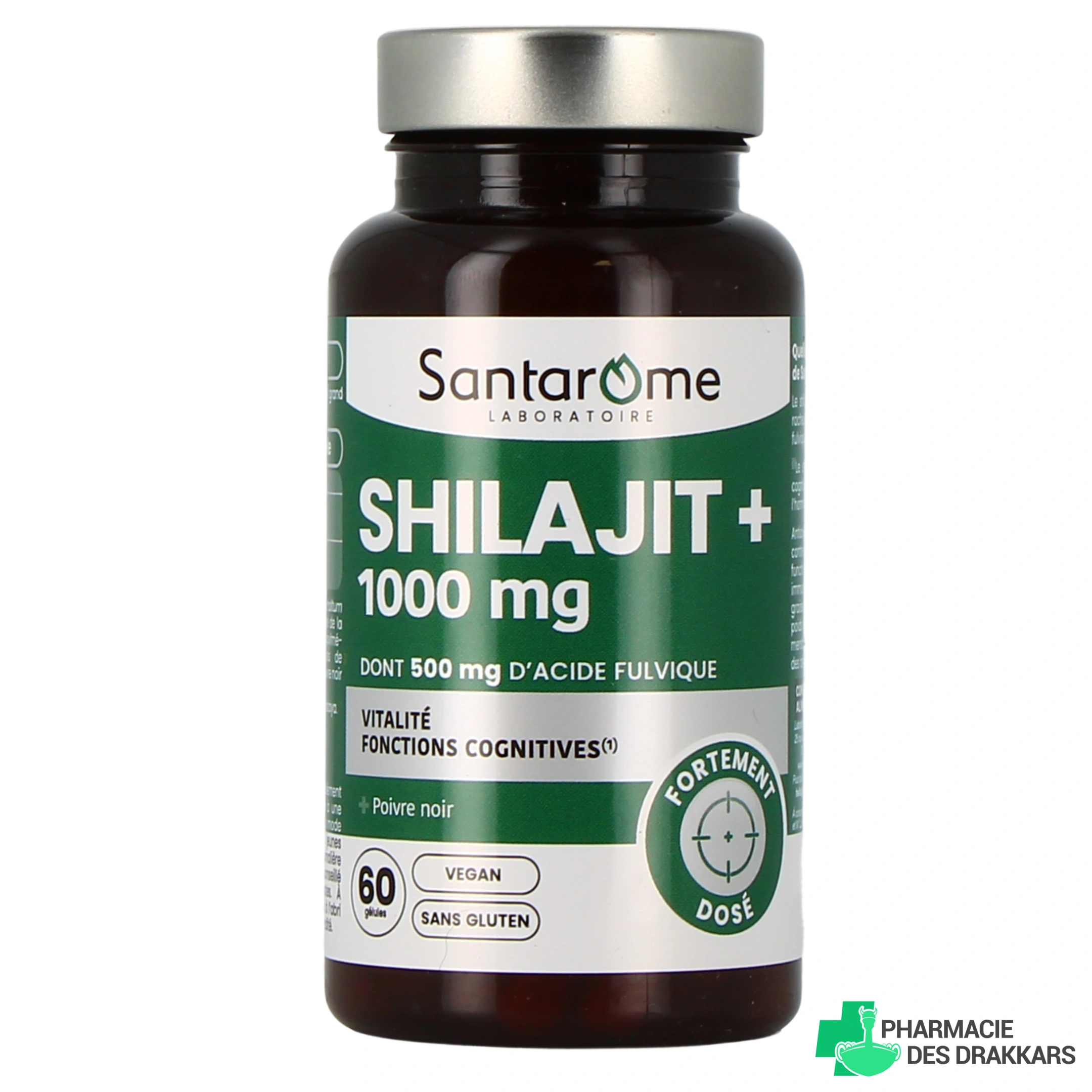 Shilajit + 1000 mg est un complément alimentaire du laboratoire Santarome présenté sous forme de gélules, dont la prise est recommandée pour soutenir la vitalité et les fonctions cognitives.