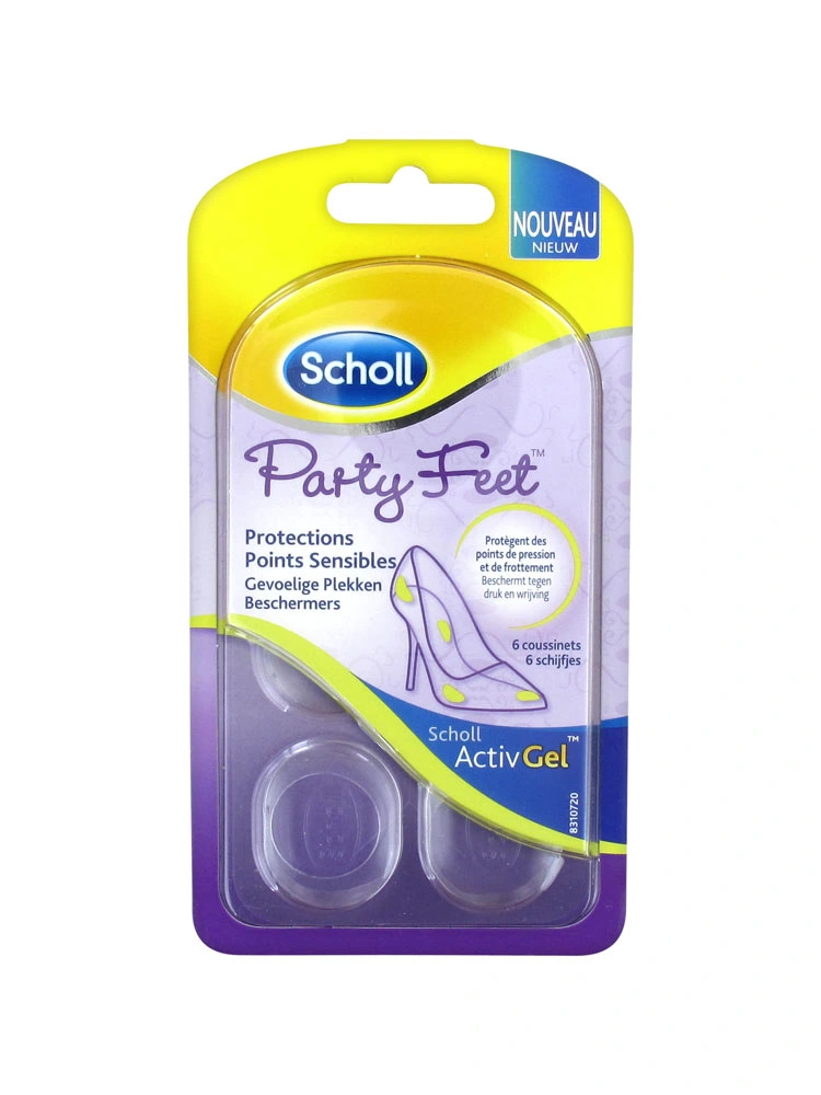 Présentation proposée par votre pharmacie en ligne pour les protections points sensibles Scholl Party Feet : Lot de 6 coussinets sous blister.