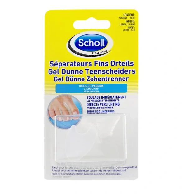 Développés en collaboration avec des podologues, les séparateurs fins d'orteils Scholl sont conçus pour réduire les frottements entre les orteils, notamment sur l'oeil-de-perdrix ainsi que sur les zones endolories. Lavables et réutilisables, ils sont très discrets et vous garantissent un confort optimal à chaque utilisation.
