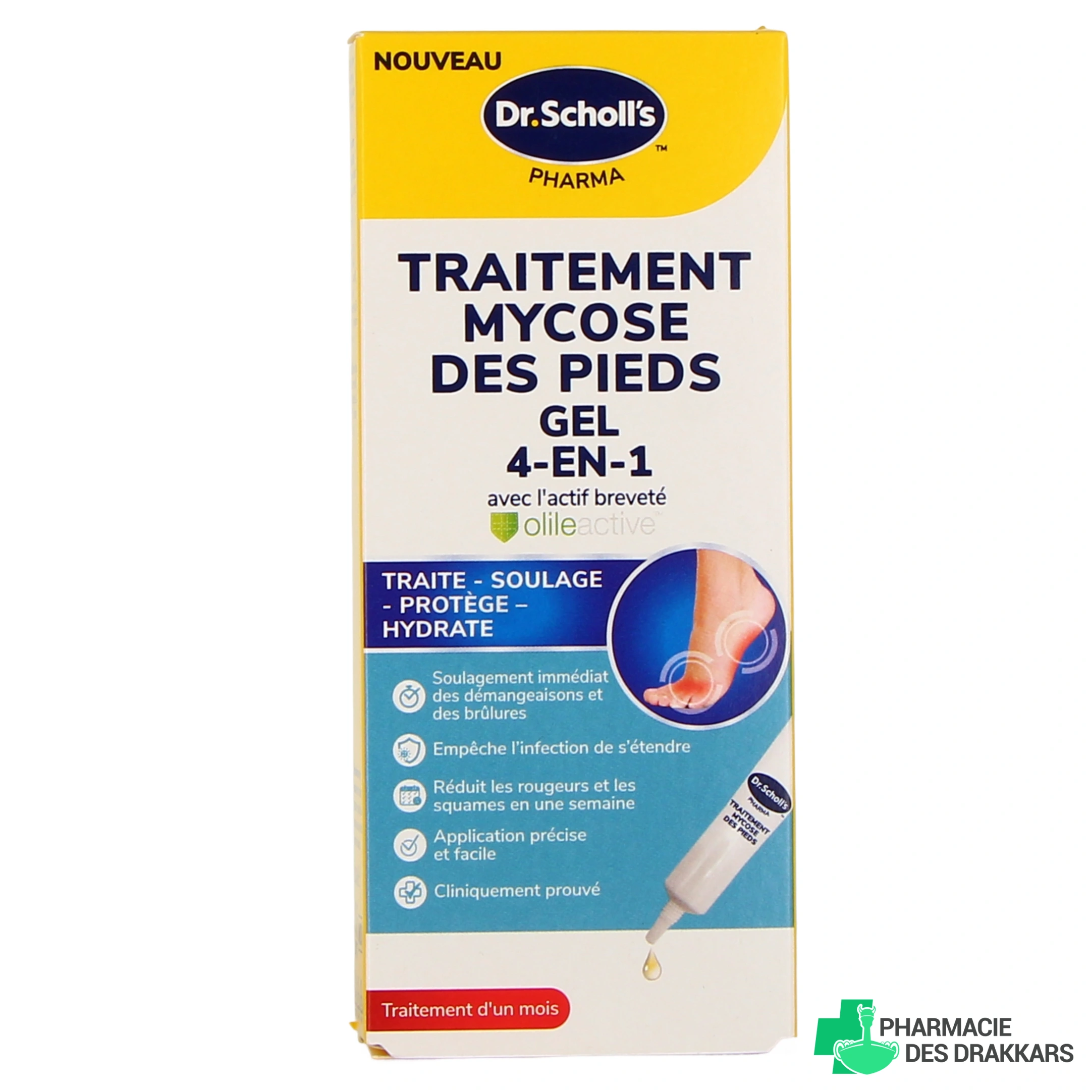 Le traitement Mycose des Pieds de Scholl est un dispositif médical sous forme de gel 4 en 1 destiné à traiter, soulager, protéger et hydrater vos pieds en cas de mycoses.