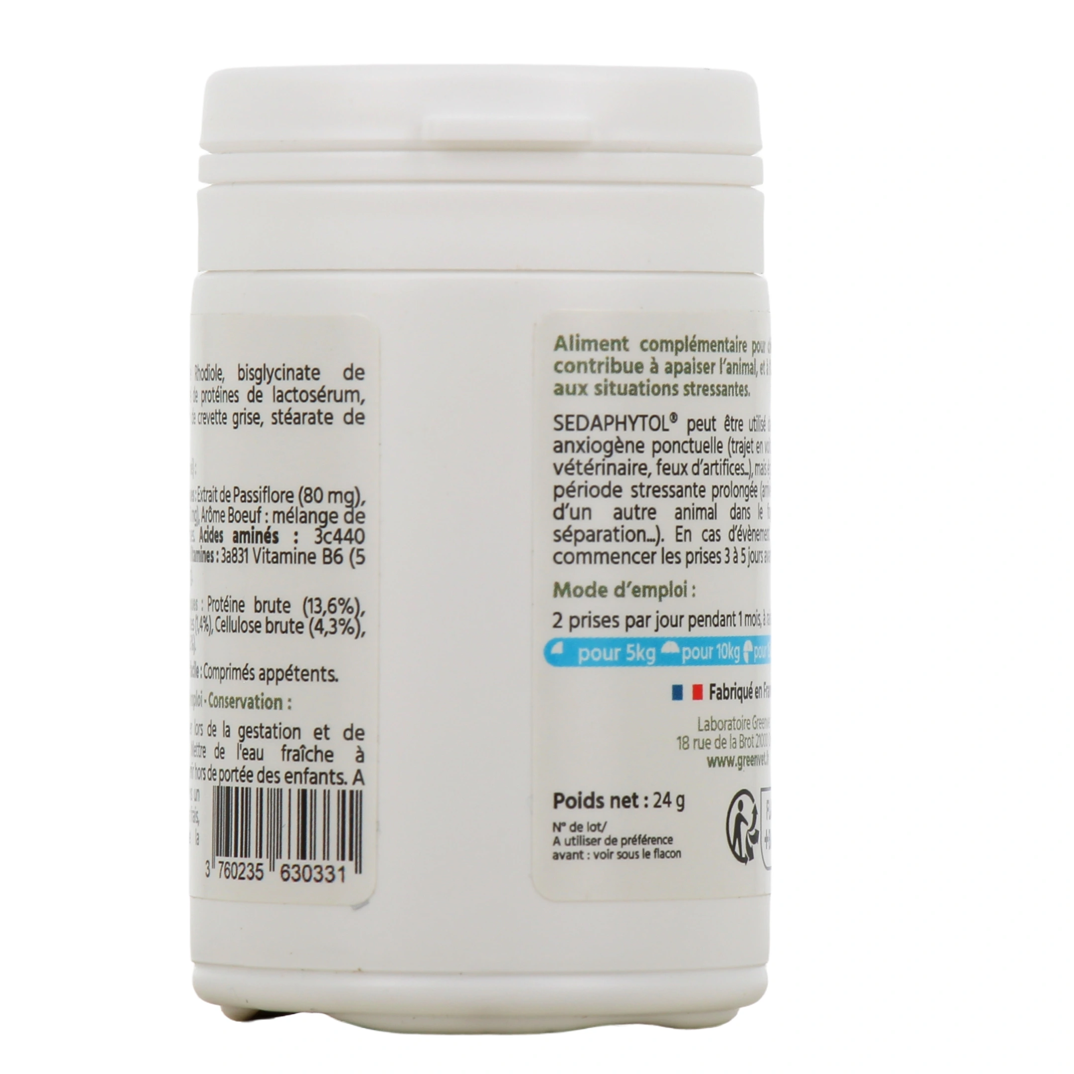 Votre animal de compagnie présente des signes de stress, d'agitation, ou il est incapable de rester détendu dans certaines situations ? Découvrez Sedaphytol du laboratoire GreenVet, un aliment complémentaire adapté pour les chiens et les chats, et présenté sous la forme de comprimés appétents au bon arôme de boeuf et crevette afin de faciliter sa prise.