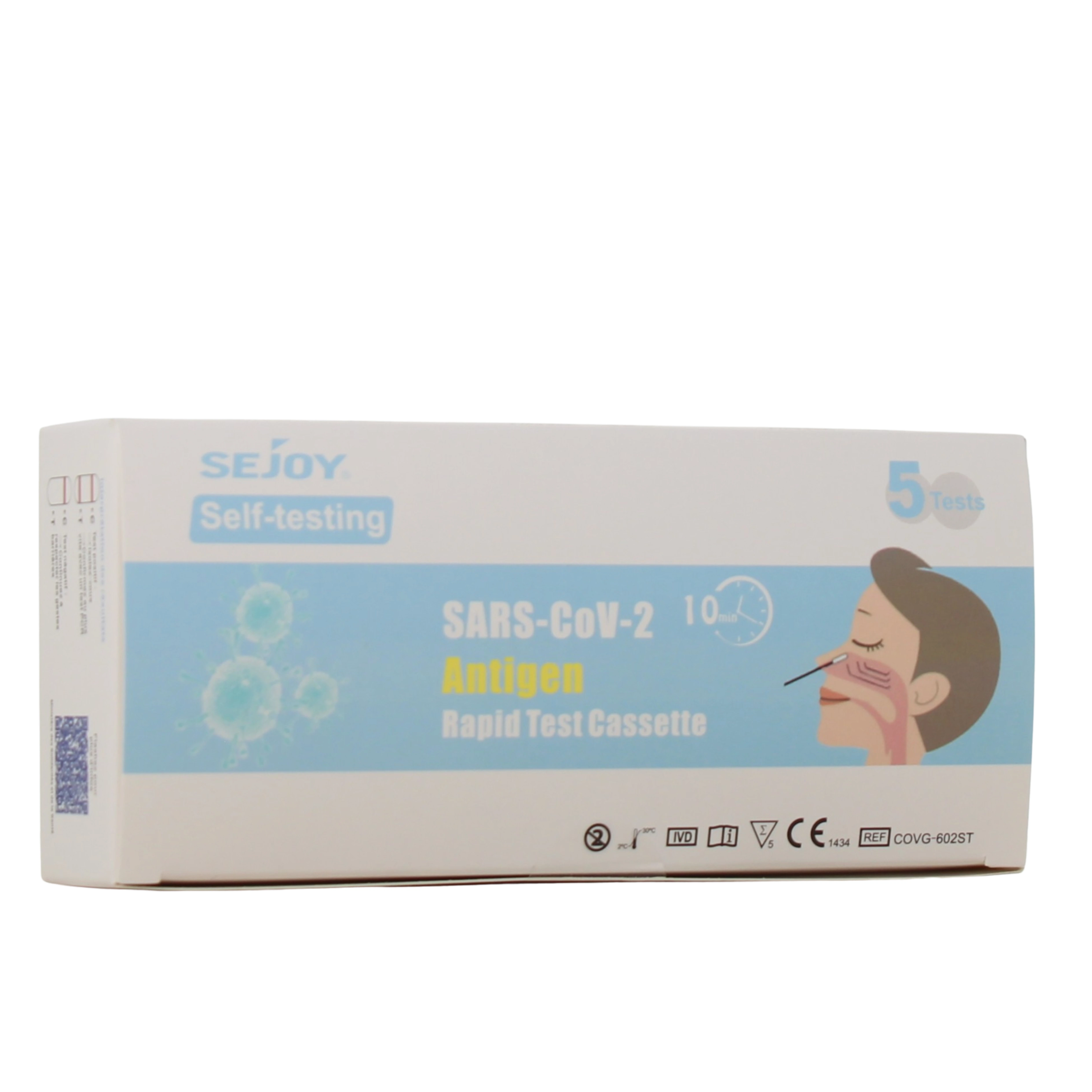 L'autotest covid proposé par Sejoy est un kit de test rapide d'antigène SARS-CoV-2, qui permet de savoir si l'on est infecté par la Covid-19. Il se réalise par prélèvement nasal et offre des résultats en moins de 20 minutes.
