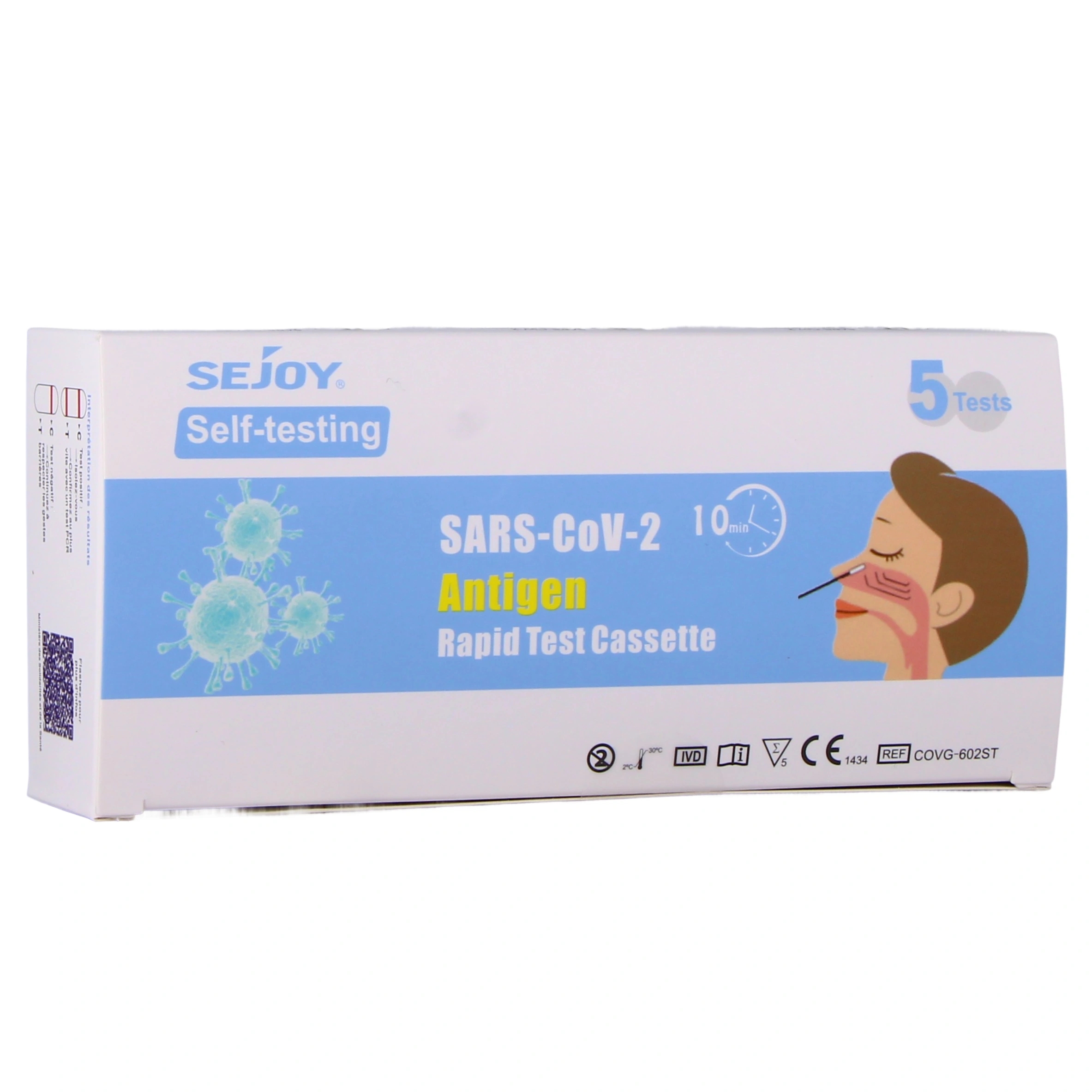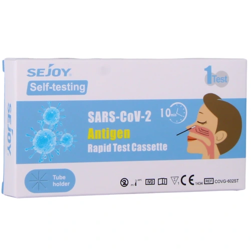 L'autotest covid proposé par Sejoy est un kit de test rapide d'antigène SARS-CoV-2, qui permet de savoir si l'on est infecté par la Covid-19. Il se réalise par prélèvement nasal et offre des résultats en moins de 20 minutes.