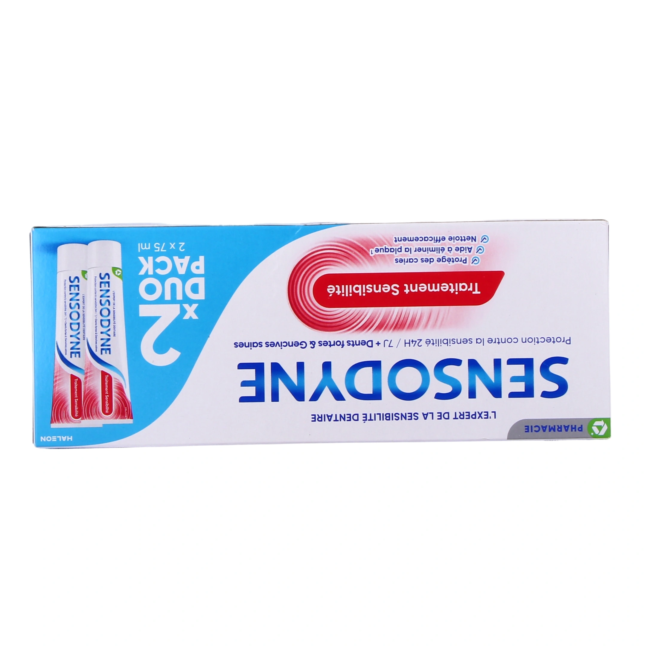 Présentations proposées par votre pharmacie en ligne pour le dentifrice traitement sensibilité Sensodyne : Tube de 75 ml - Lot de 2 tubes de 75 ml.