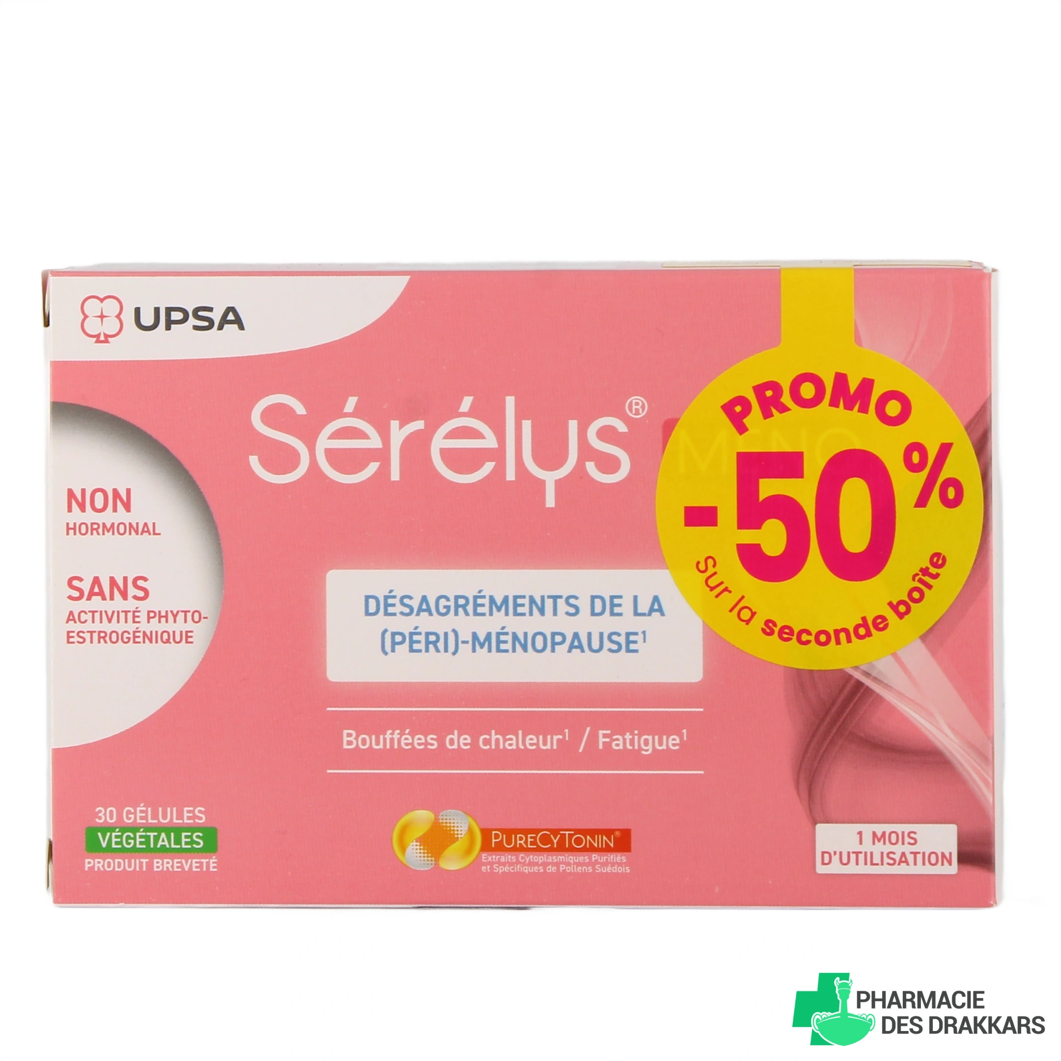 Serelys Meno est un complément alimentaire sans hormone, indiqué pour les désagréments liés à la (péri)-ménopause tels que les bouffées de chaleur et la fatigue.