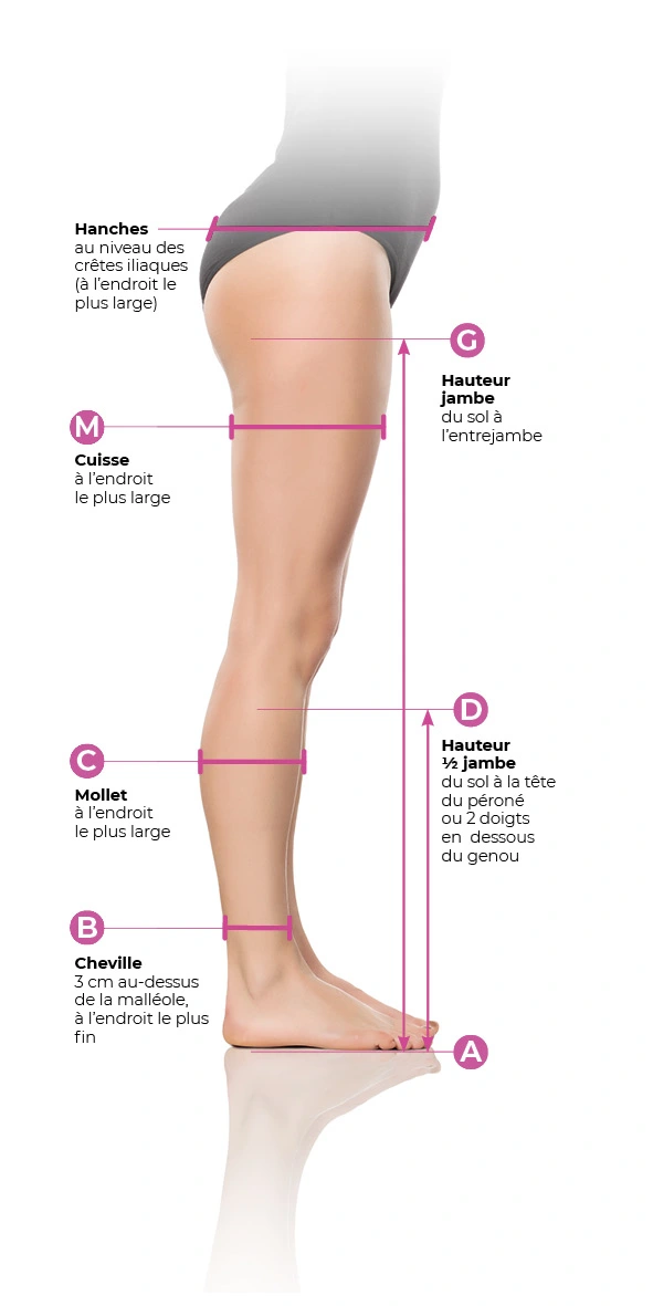 | Tour de mollet (cm) | 27 à 35 | 30 à 38 | 33 à 41 | 37 à 45 | 40 à 48 | 43 à 51 |