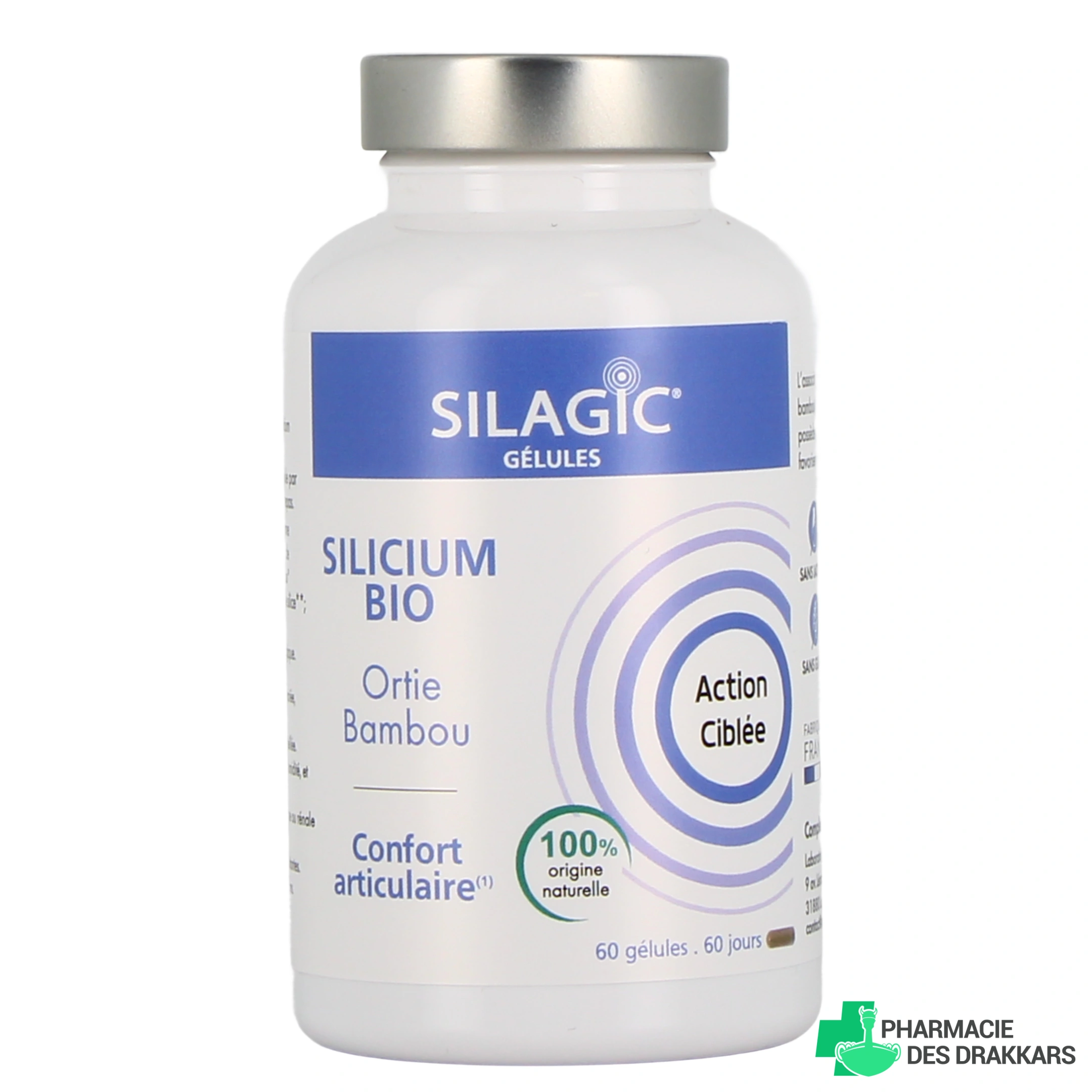 Vous pourrez sélectionner le complément alimentaire Silagic Silicium Bio Gélules parmi les présentations suivantes sur notre pharmacie en ligne : flacon de 60 gélules (pour 60 jours).