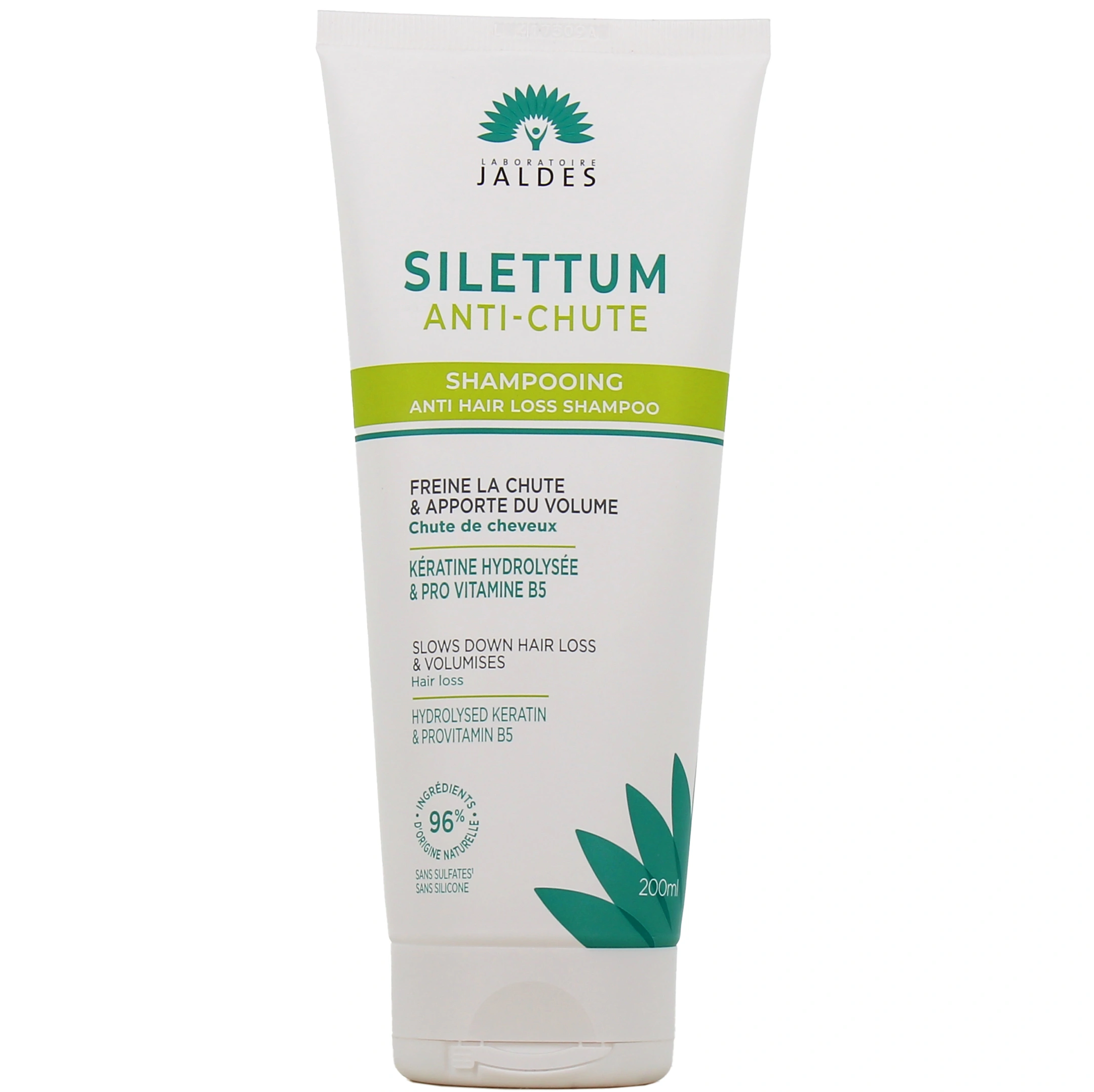 Conditionnement proposé par la Pharmacie des Drakkars pour le shampooing anti-chute Silettum : tube de 200 ml.