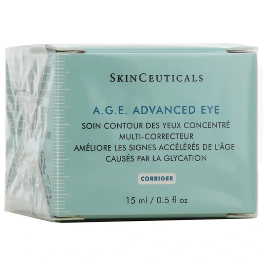 Age Advanced Eye est un soin contour des yeux à visée anti-âge développé par la marque SkinCeuticals. Il s'adresse aux peaux matures sèches, normales et mixtes, même sensibles. Son rôle est d'améliorer plus de 10 signes associés au vieillissement de la peau et à la glycation.