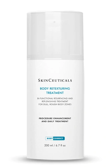 Présenté sous forme de gel, le Body Retexturing Treatment SkinCeuticals corrige les zones rugueuses et sèches du corps par sa fonction à la fois hydratante et peeling.