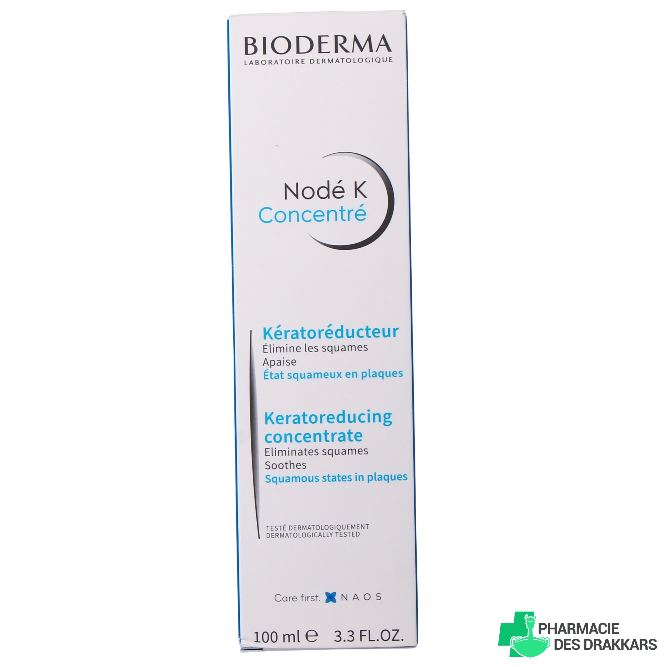 Conditionnement disponible sur la Pharmacie des Drakkars pour le concentré kérato-réducteur Bioderma Nodé K :