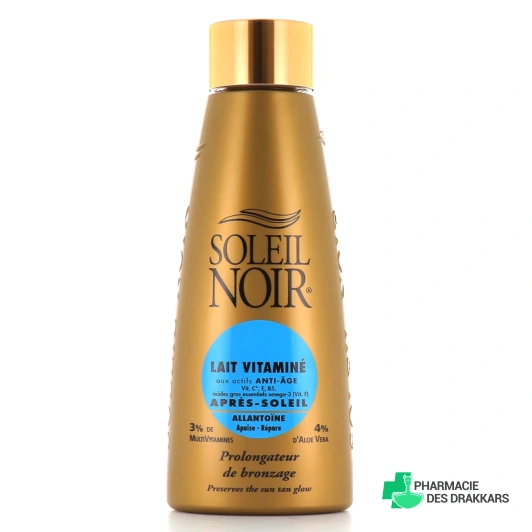 Le lait vitaminé après-soleil de la marque Soleil Noir est un soin après-soleil aux actifs anti-âge. Il permet d'hydrater et apaiser la peau, et de prolonger le bronzage.
