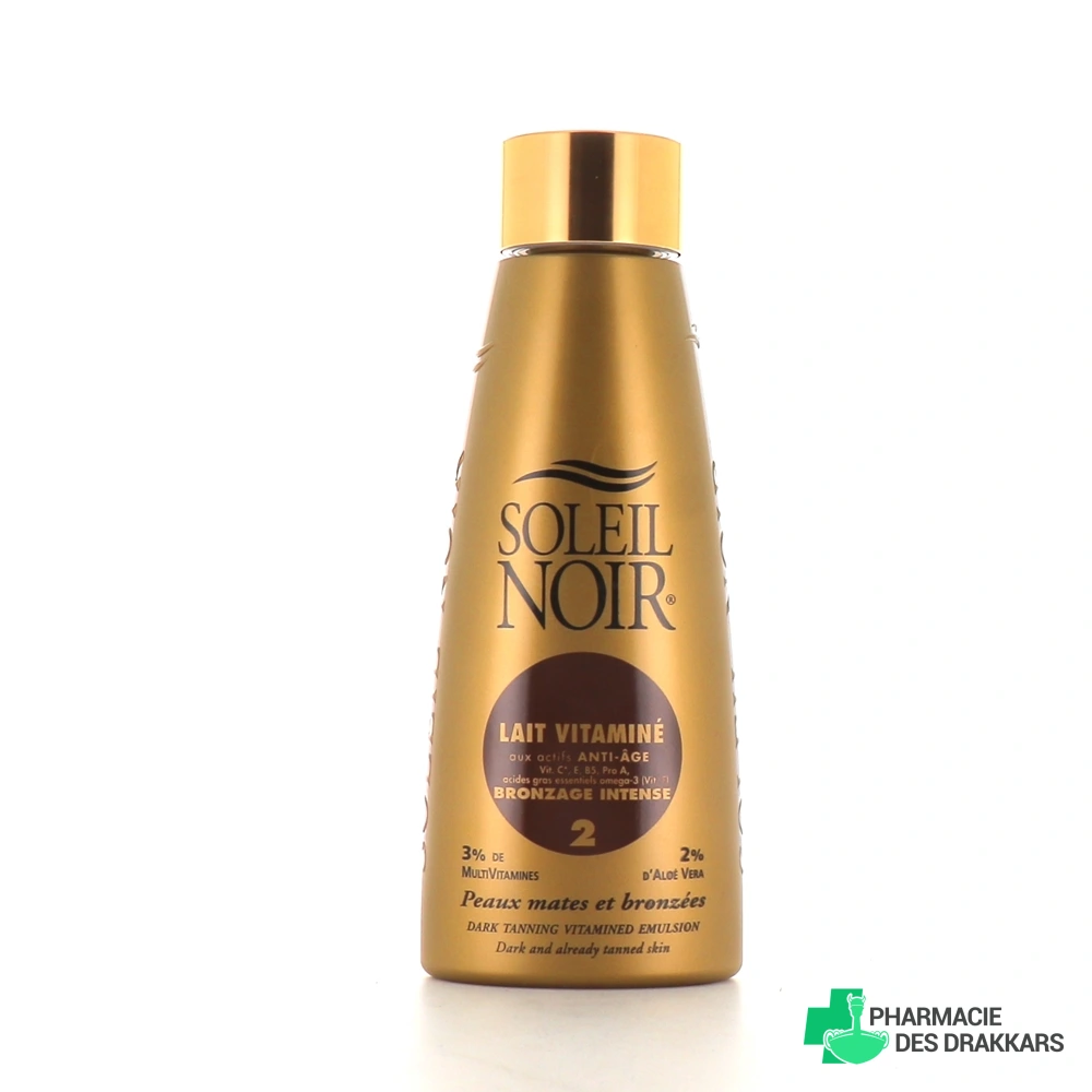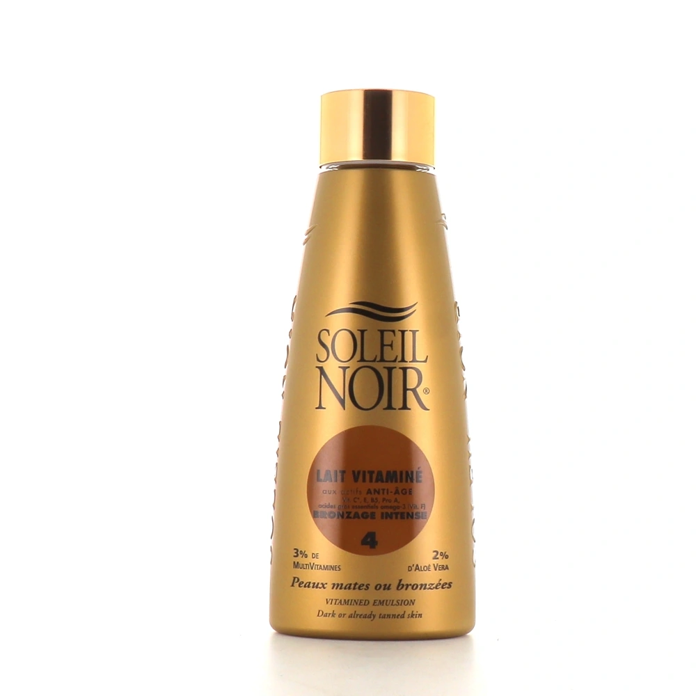 Le lait vitaminé bronzage intense de la marque Soleil Noir est un préparateur solaire destiné aux peaux mates, déjà bronzées, ainsi qu'aux peaux métisses et noires.