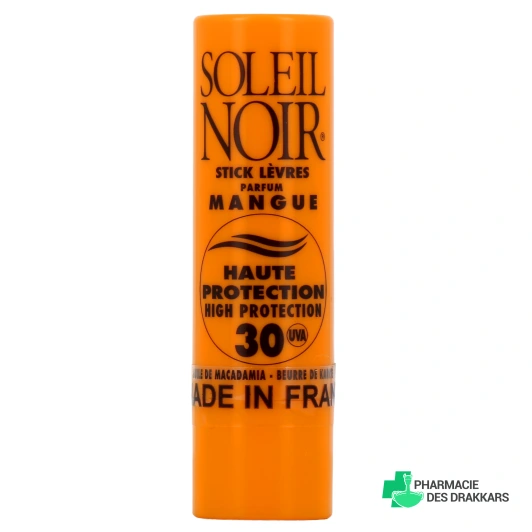 Le stick lèvres SPF 30 goût fraise ou mangue de la marque Soleil Noir est une protection solaire spécifique pour les lèvres. Elle prévient les dommages provoqués par les UV et maintient l'hydratation et le confort des lèvres.