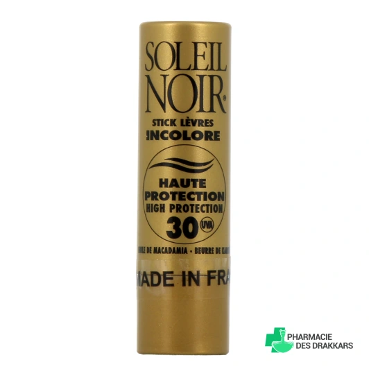 Présentation proposée pour le stick lèvres incolore SPF 30 Soleil Noir sur notre pharmacie en ligne : Stick de 4 g