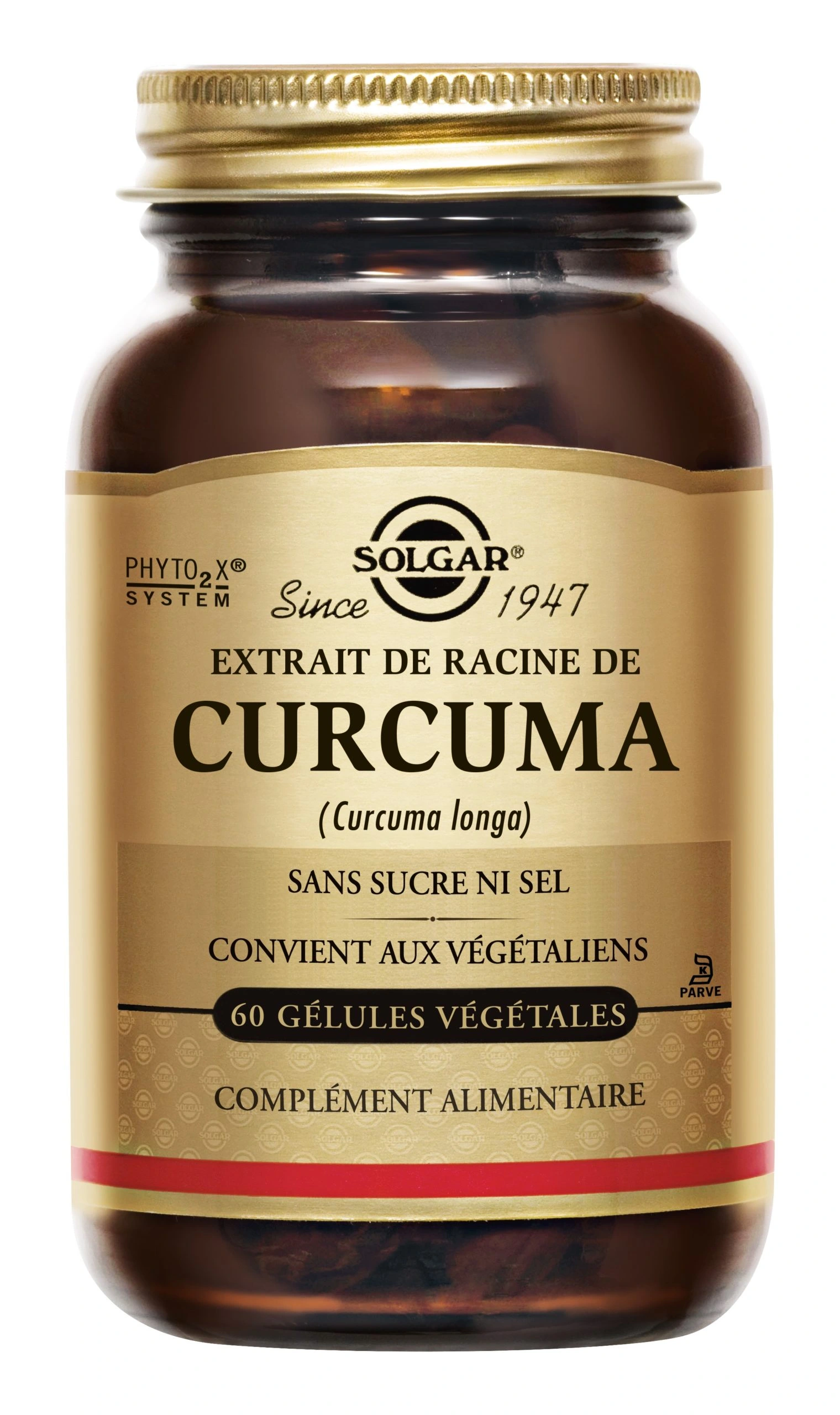 La curcumine (curcuminoïdes), présente dans cette épice très appréciée pour sa saveur, aide à contrôler les réponses inflammatoires dans le corps. Les Plantes Standardisées Solgar sont élaborées avec un procédé unique qui intègre les données de l’herboristerie traditionnelle et de la technologie des plantes standardisées. Ainsi, chaque plante standardisée garantit une concentration constante de principes actifs et comporte également un extrait "PhytO2X TM", mélange de beta-carotène et de vitamine C destinés à optimiser la conservation et la "fraîcheur" des ingrédients.