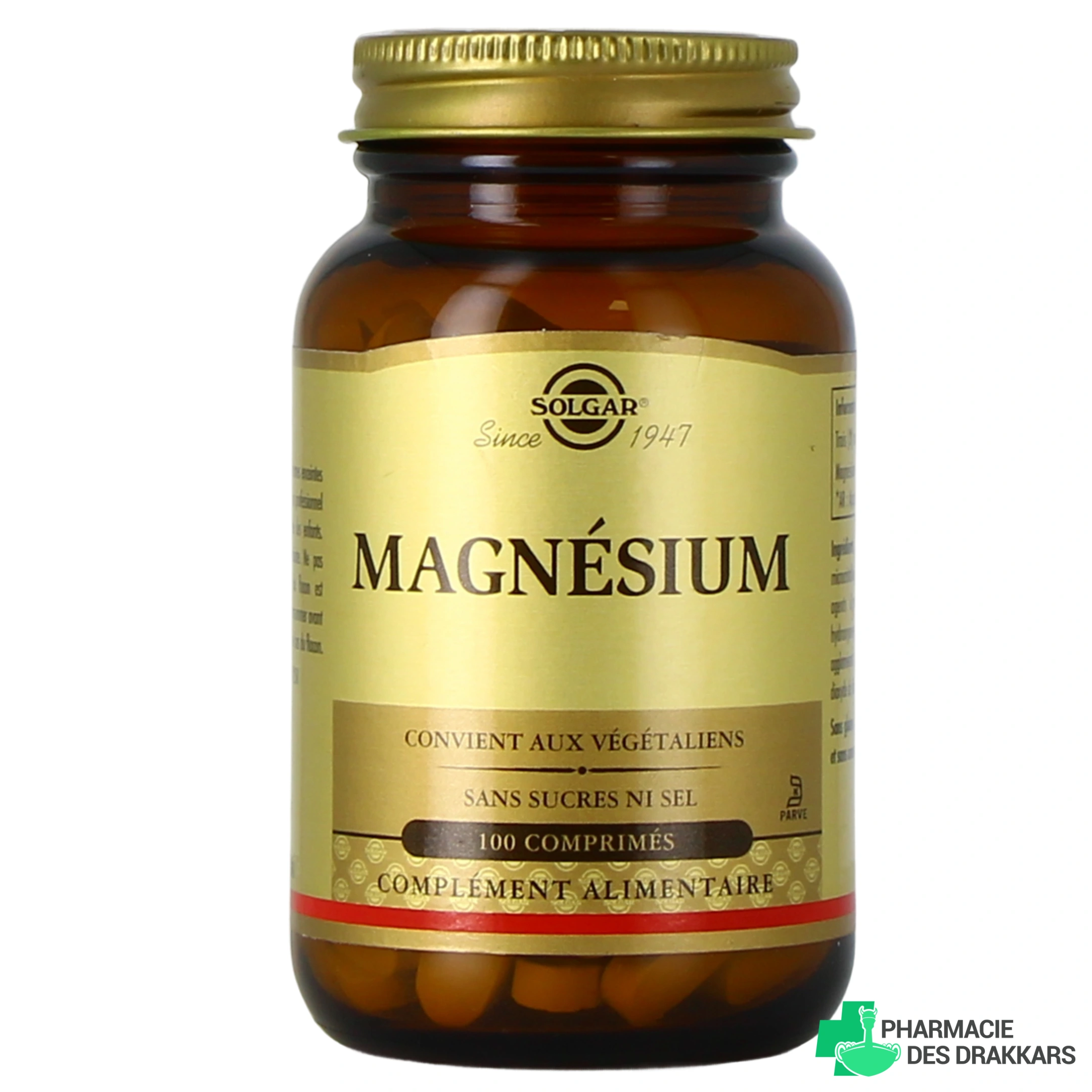 Vous pourrez retrouver le complément alimentaire Magnésium Bisglycinate de Solgar dans les présentations suivantes chez Pharmacie des Drakkars : flacon de 100 comprimés (tablets).
