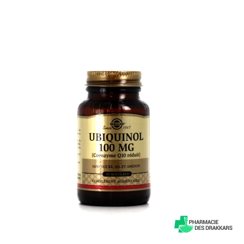 Solgar Ubiquinol 100 mg est un complément alimentaire sous forme de capsules en gel, contenant une forme réduite de Coenzyme Q10.