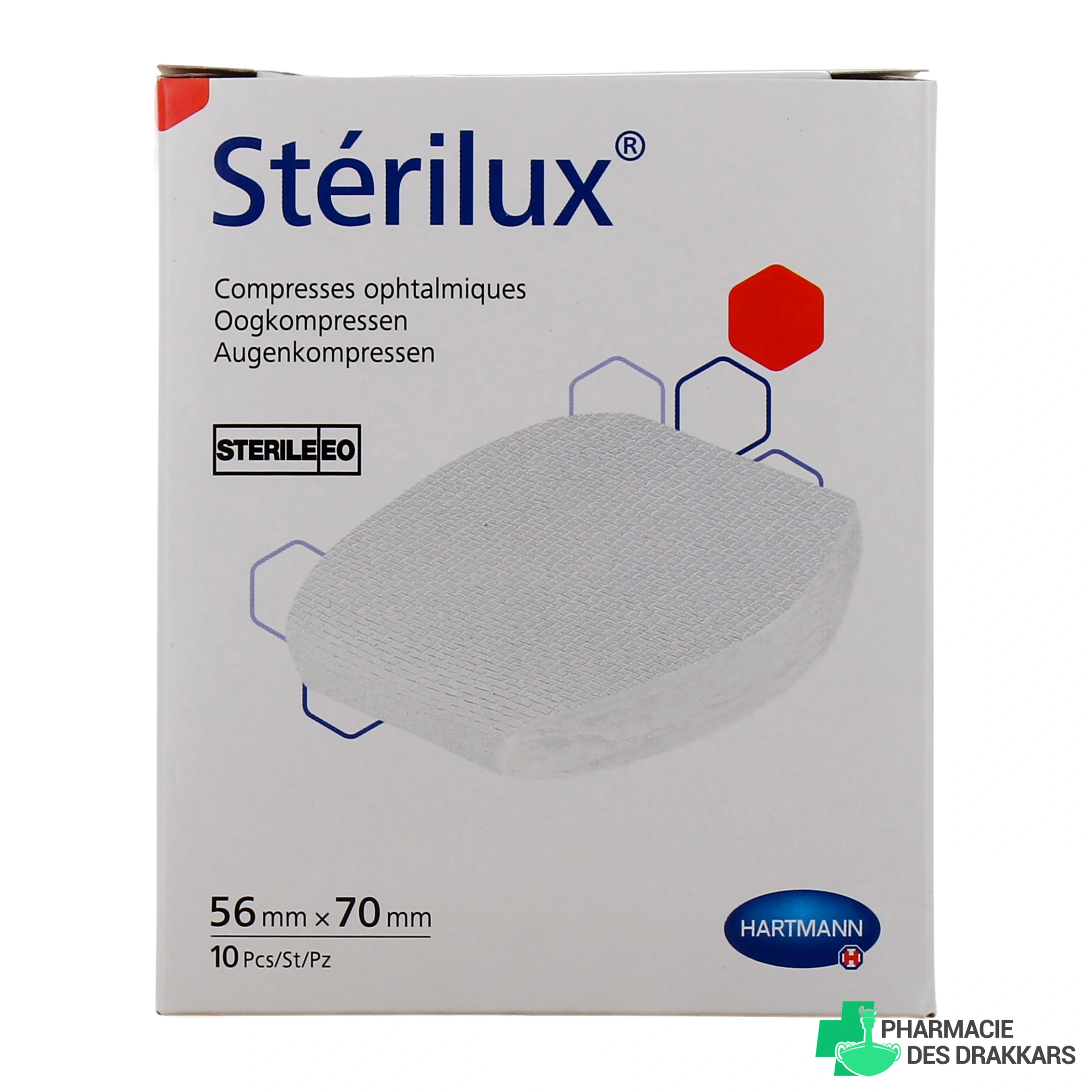 Vous pourrez retrouver les compresses ophtalmiques Stérilux d'Hartmann dans les présentations suivantes chez Pharmacie des Drakkars : 1 boîte de 10 compresses oculaires 56 x 70 mm.