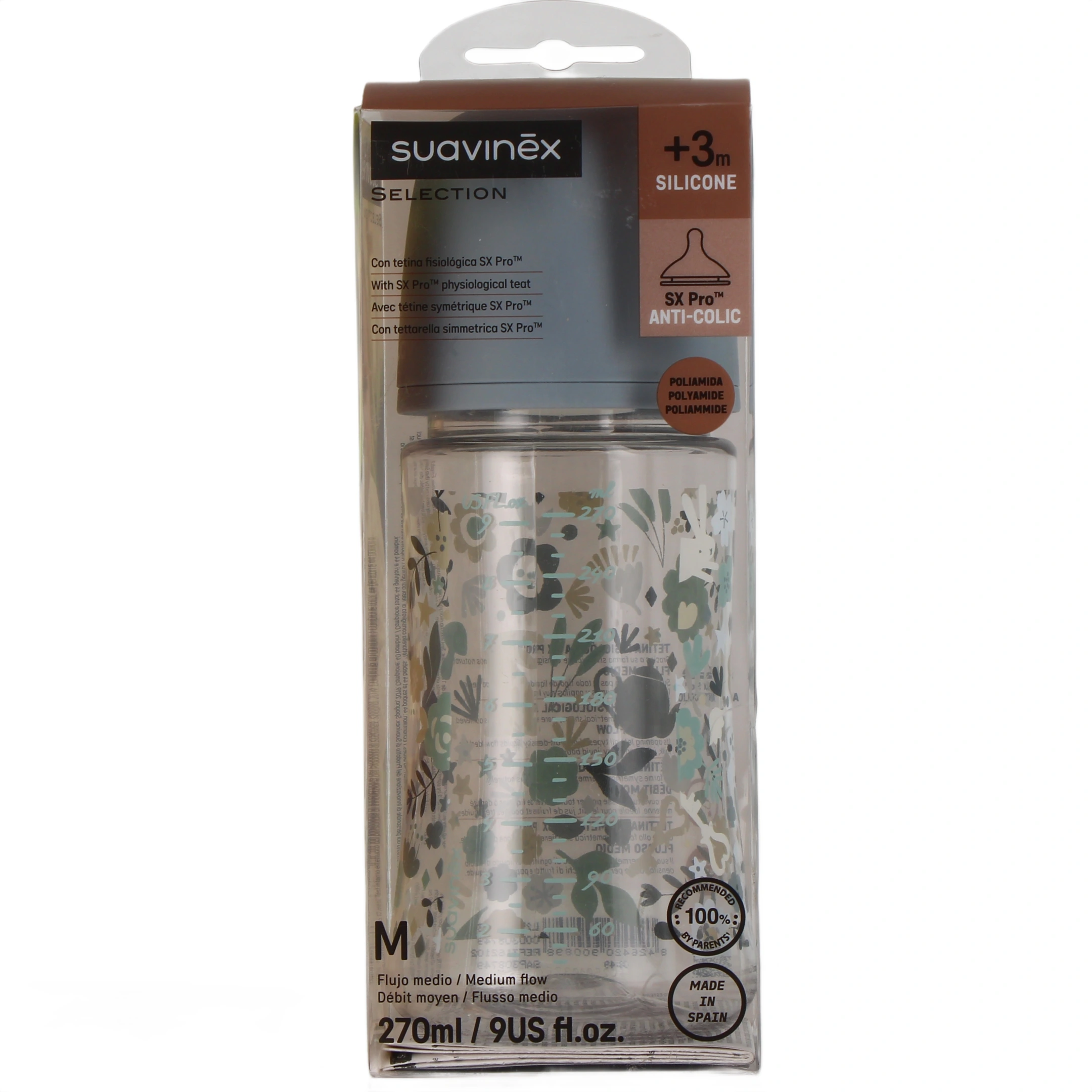 Le Biberon Suavinex Polyamide est un biberon en plastique totalement transparent, léger et facilement maniable. Il est garni d'une tétine SX Pro qui respecte le développement buccodentaire de votre enfant tout en réduisant le risque de colique. La tétine SX Pro reproduit une position naturelle de la langue, proche de celle de l’allaitement maternel et elle est équipée d'une valve qui aide à limiter l’ingestion d’air pendant la tétée, ce qui peut contribuer à réduire les coliques de manière indirecte.