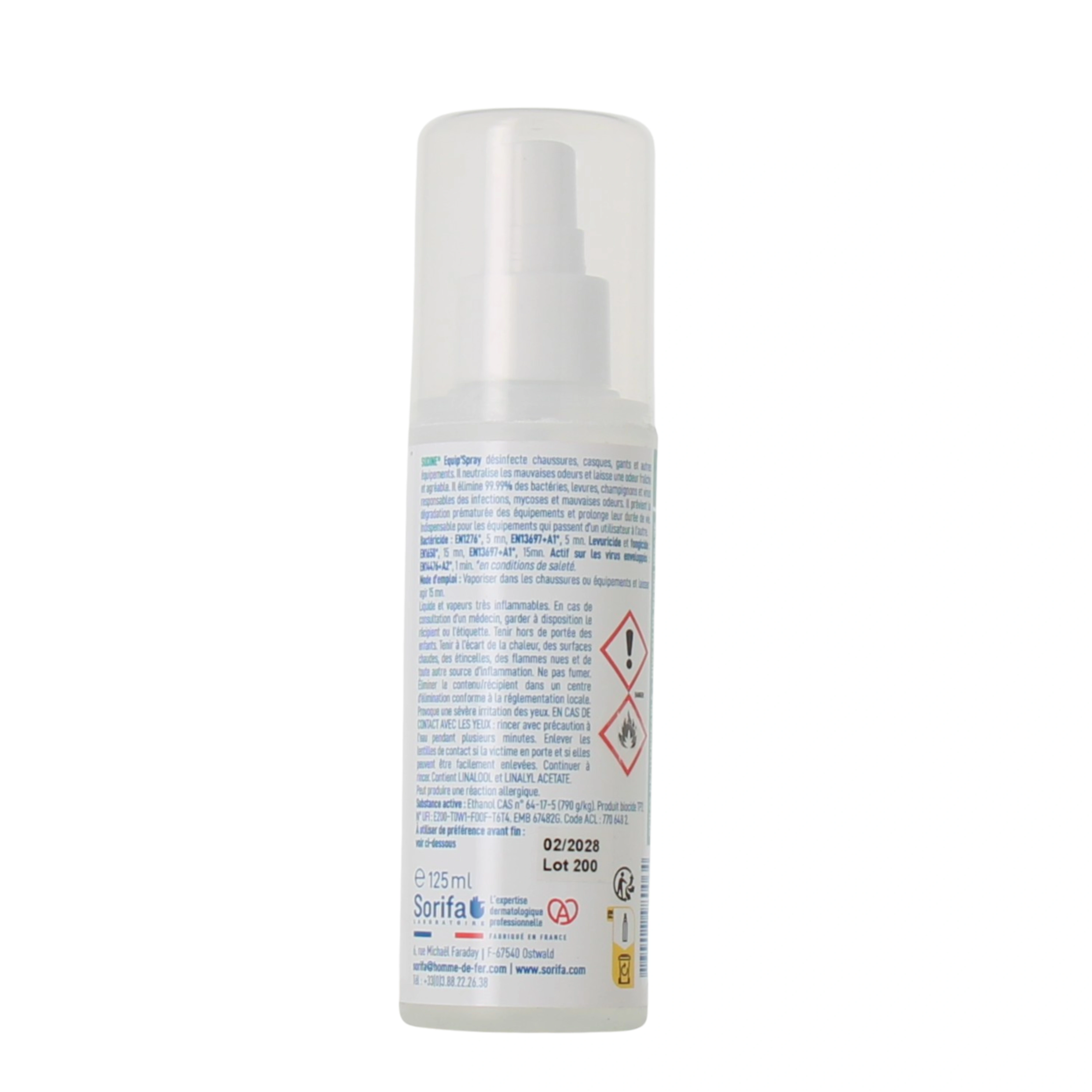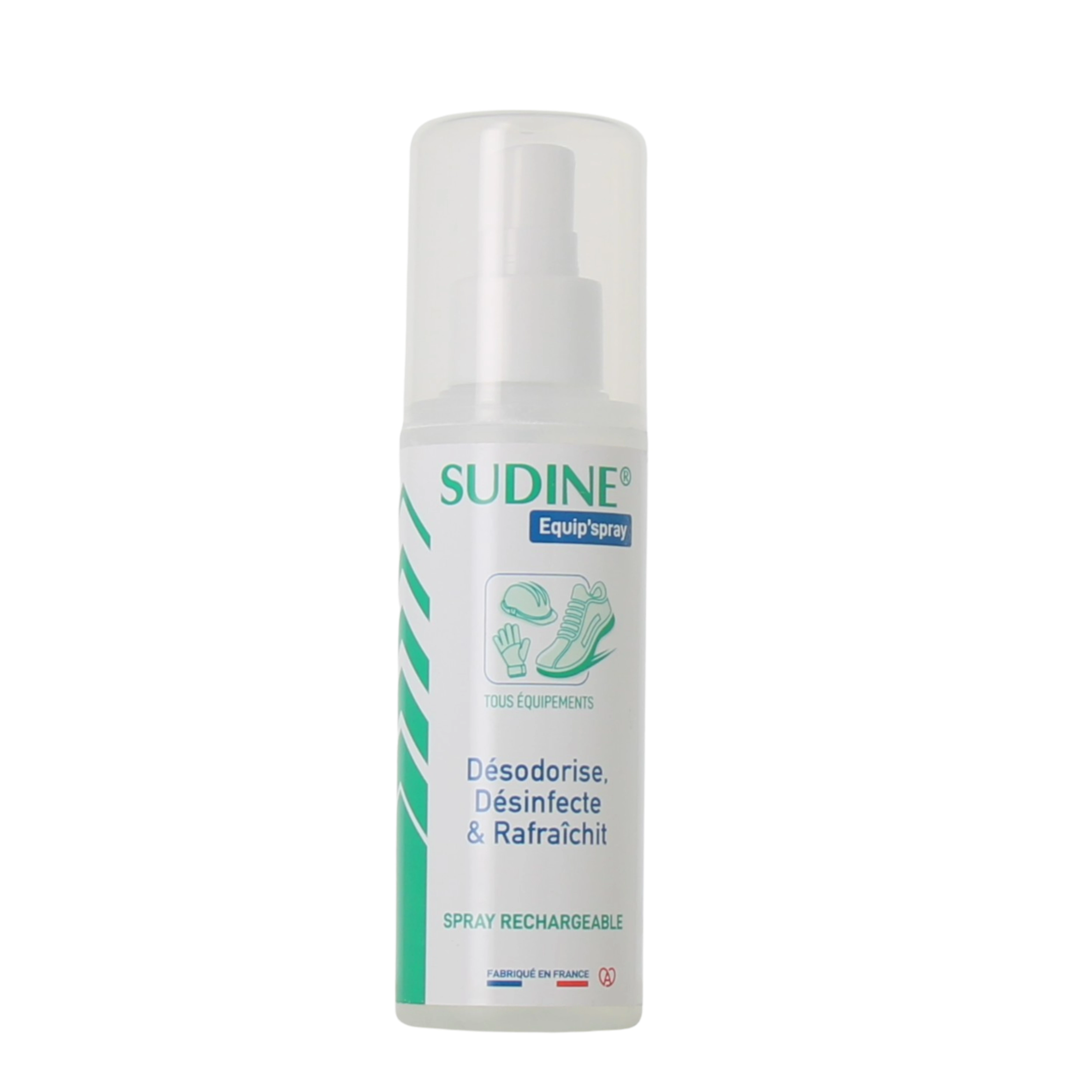 Sudine Equip'Spray est un spray désinfectant 100% naturel, conçu pour assainir et rafraîchir les chaussures, casques, gants et tout autre équipement en contact avec la peau. Il élimine efficacement les bactéries, champignons, levures et virus responsables des mauvaises odeurs, mycoses et infections. Pratique et sans gaz, il laisse une sensation de fraîcheur durable et un parfum agréable, tout en préservant la qualité et la longévité des équipements.