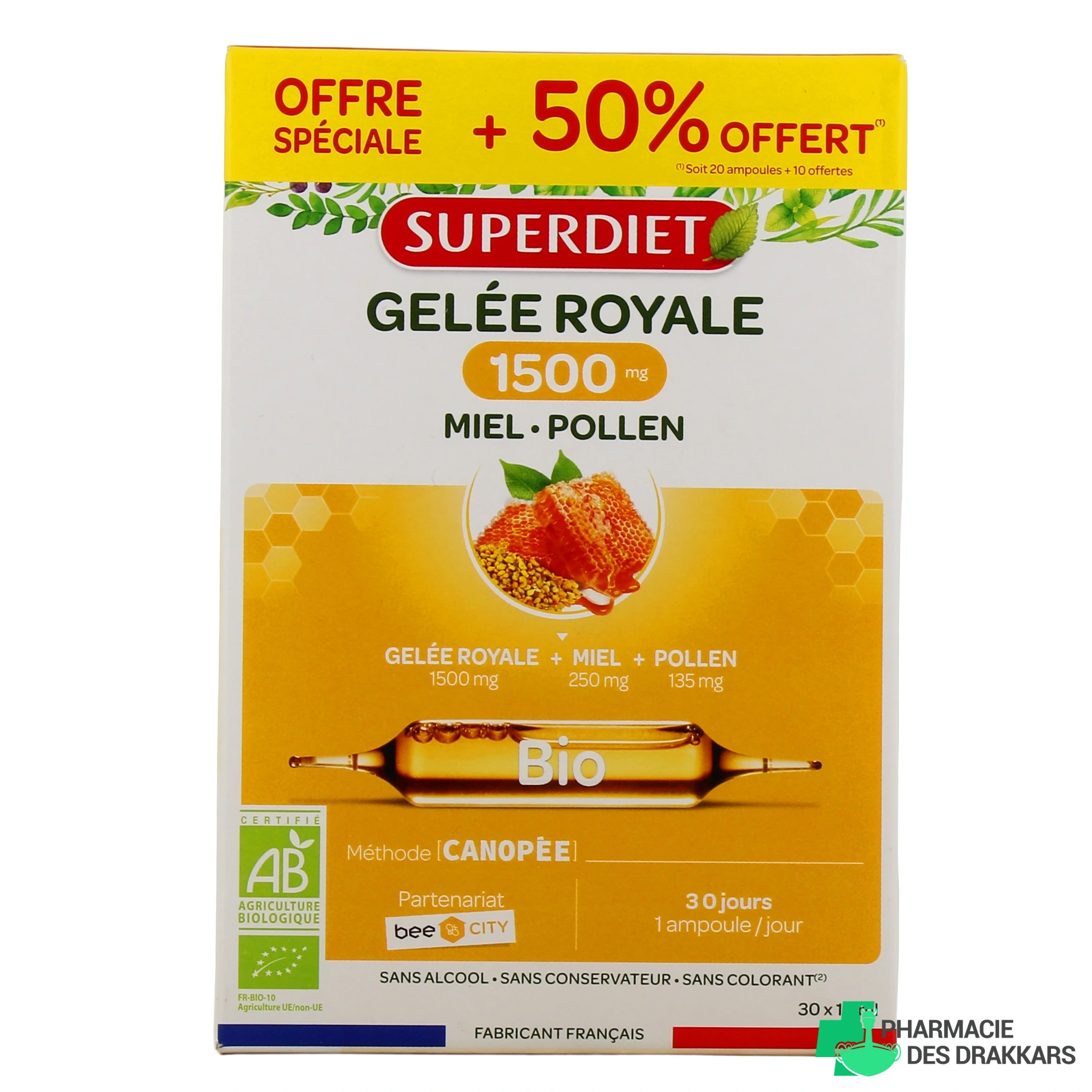 Avis du pharmacien sur Super Diet Gelée Royale 1500 mg Miel Pollen Bio