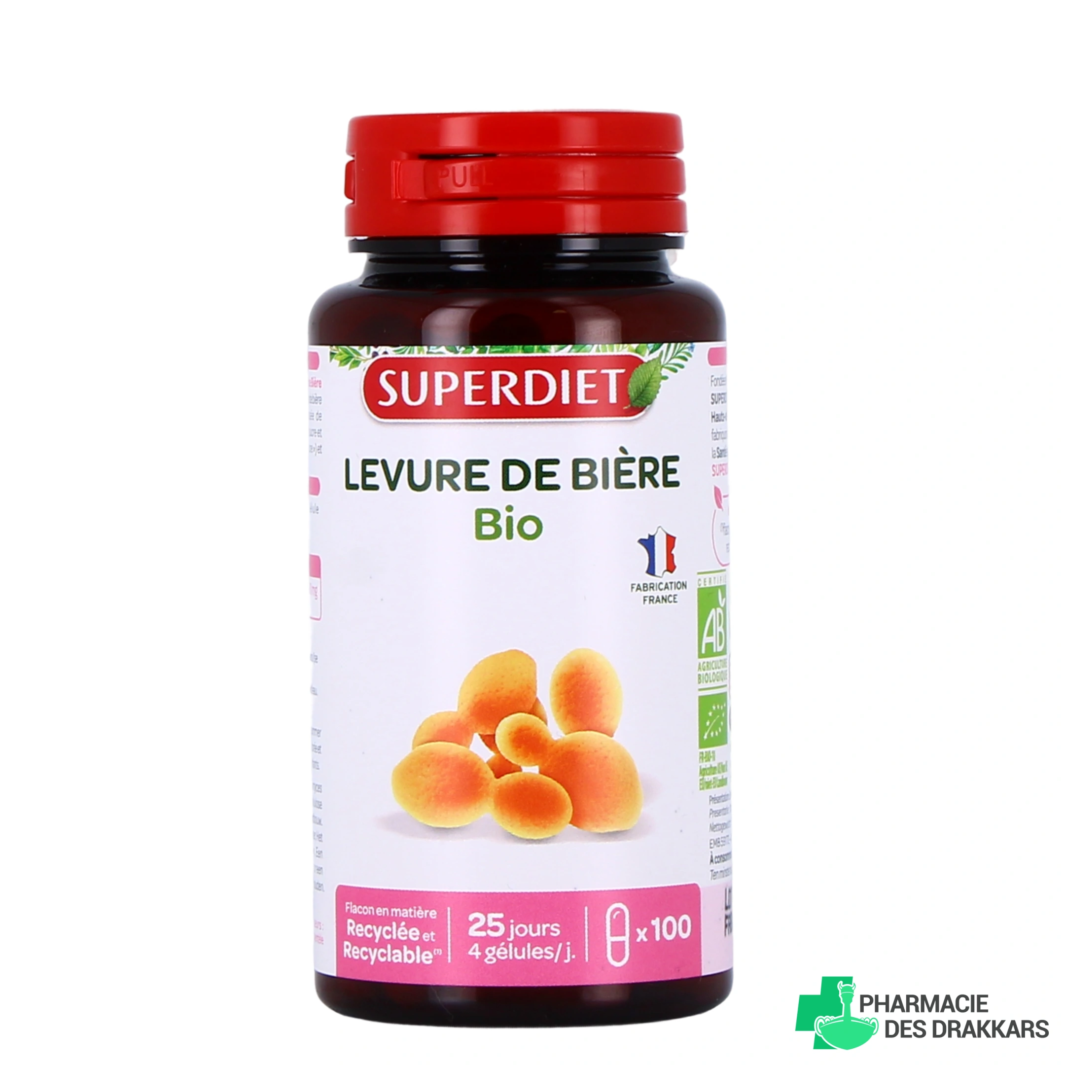 Présentation proposée par votre pharmacie en ligne : Boîte de 100 gélules d'origine marine bio à base de levure de bière.