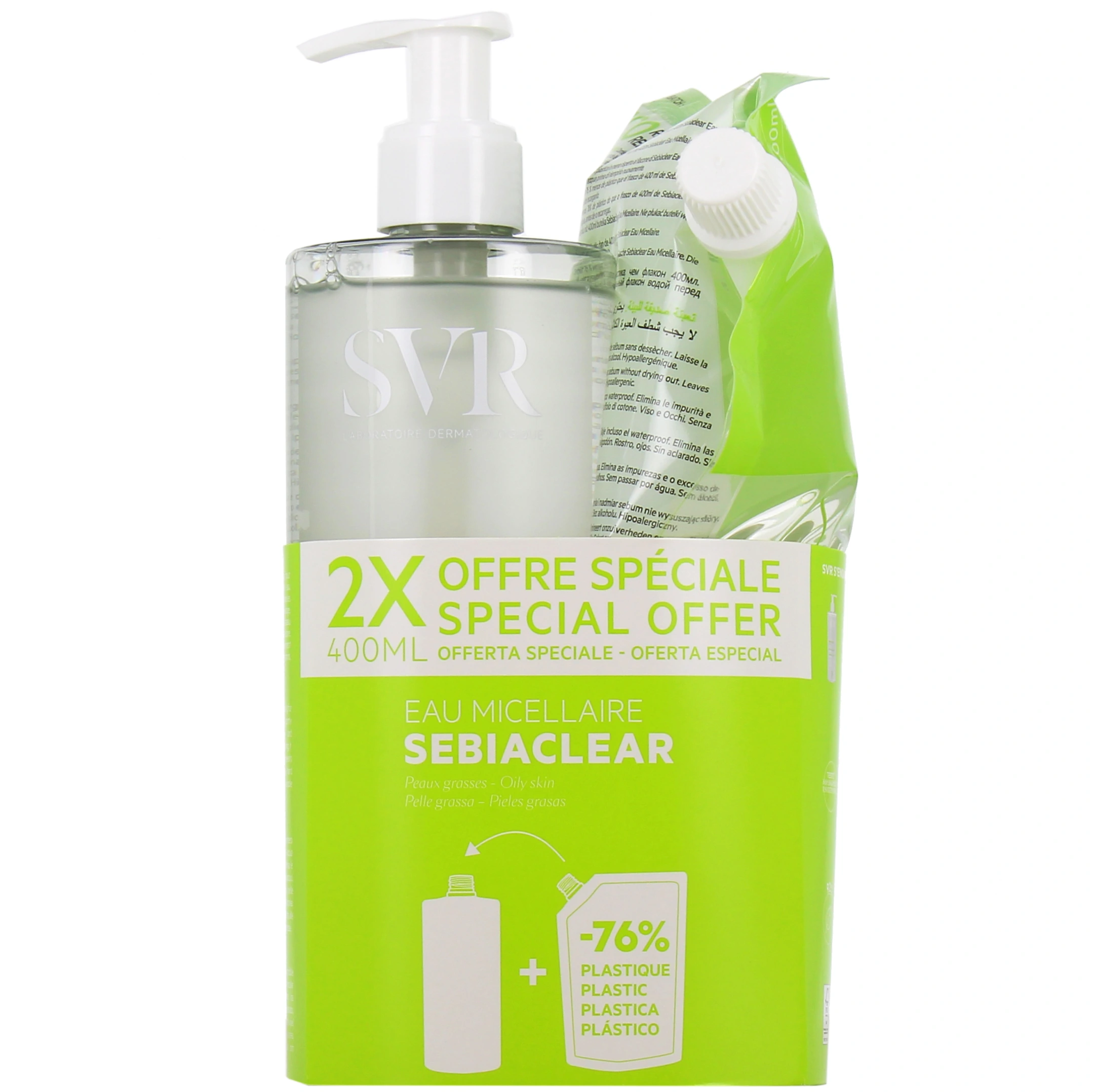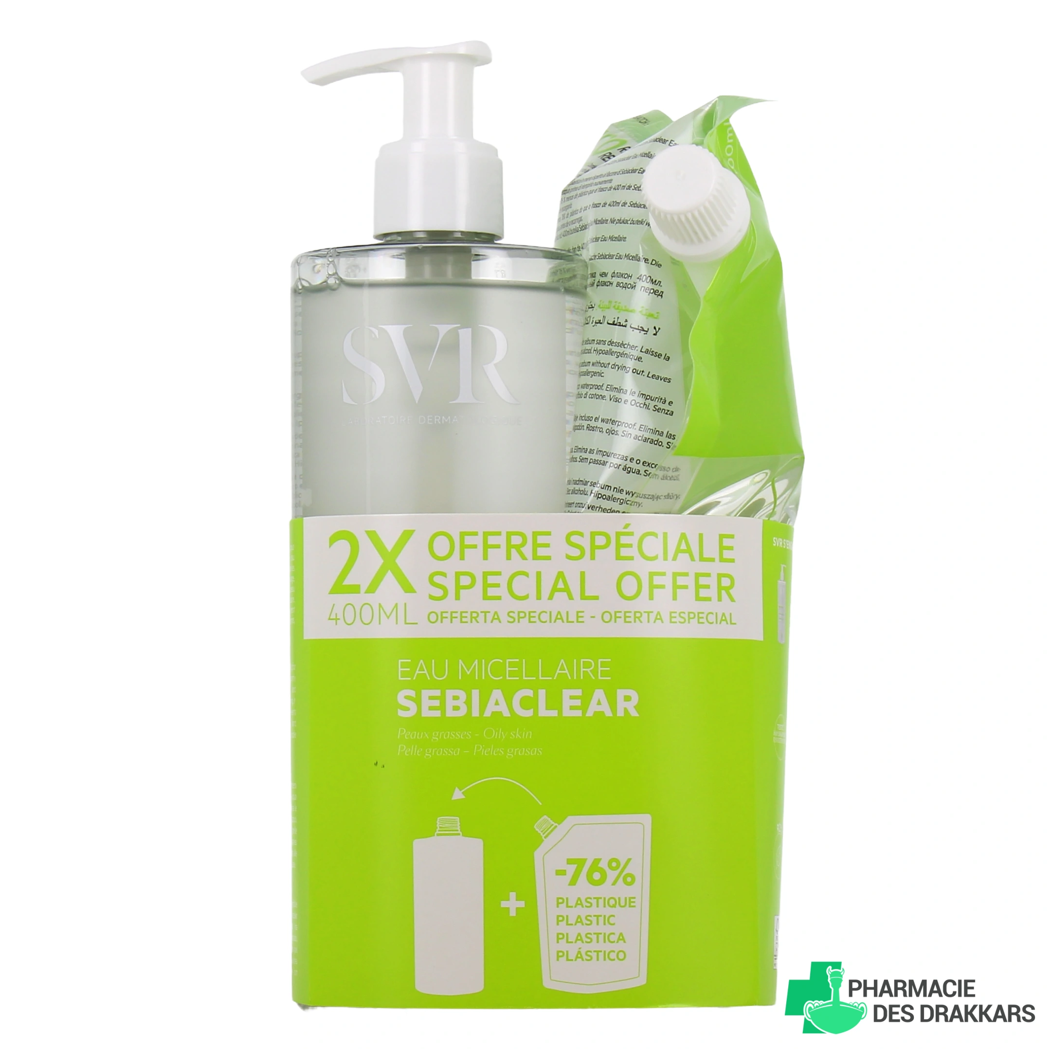 - Flacon-pompe de 400ml d'eau micellaire SVR Sebiaclear ;