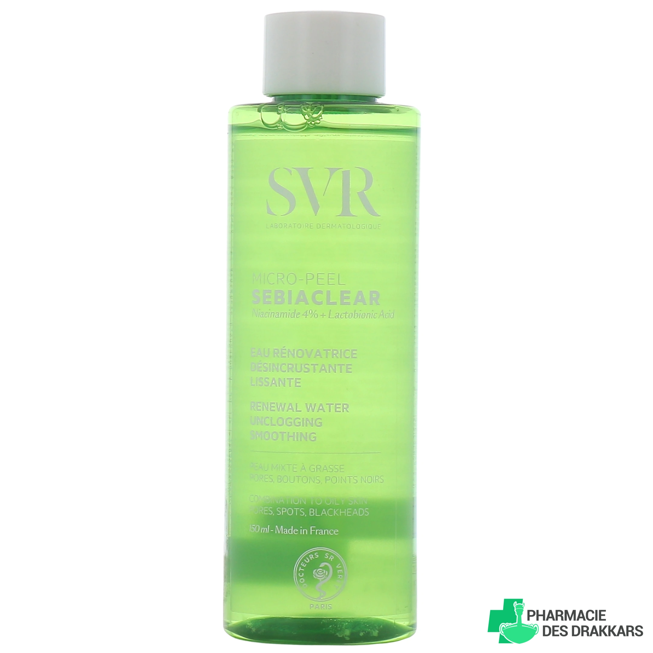Conditionnement proposé par la Pharmacie des Drakkars pour SVR Sebiaclear Micro Peel : flacon de 150 ml.