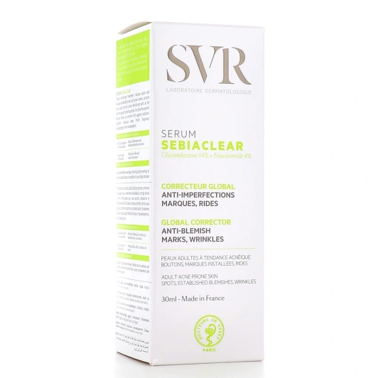 Le sérum SVR Sebiaclear est un correcteur anti-imperfections, anti-marques et anti-rides formulé pour les peaux mixtes à grasses à tendance acnéique.