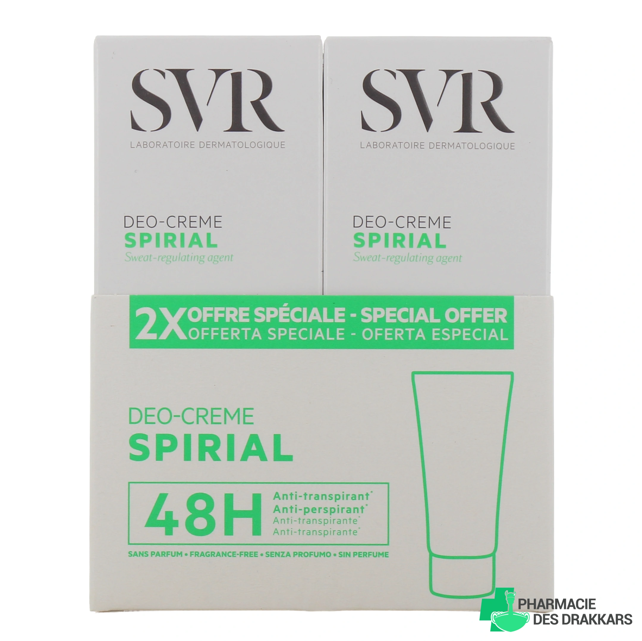 Présentations disponibles pour le déo-crème Spirial de SVR sur notre pharmacie en ligne : Tube de 50 ml à l'unité ou en lot de 2
