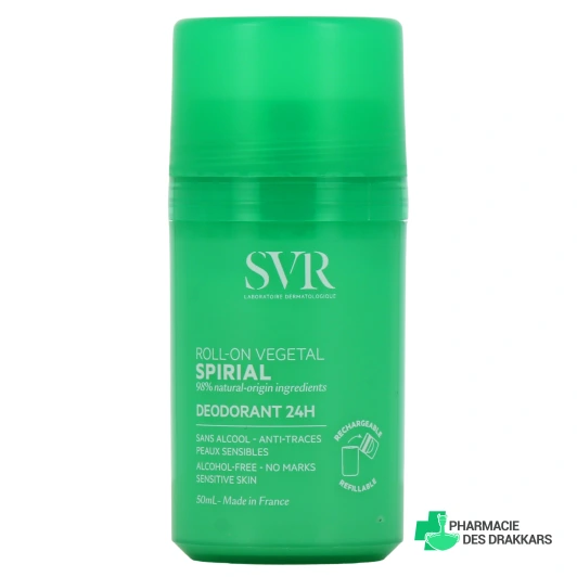 Le déodorant 24h roll-on Spirial Végétal est un produit mis au point par le laboratoire SVR. Il aide à lutter contre la transpiration légère à modérée et reste efficace du matin jusqu'au soir.