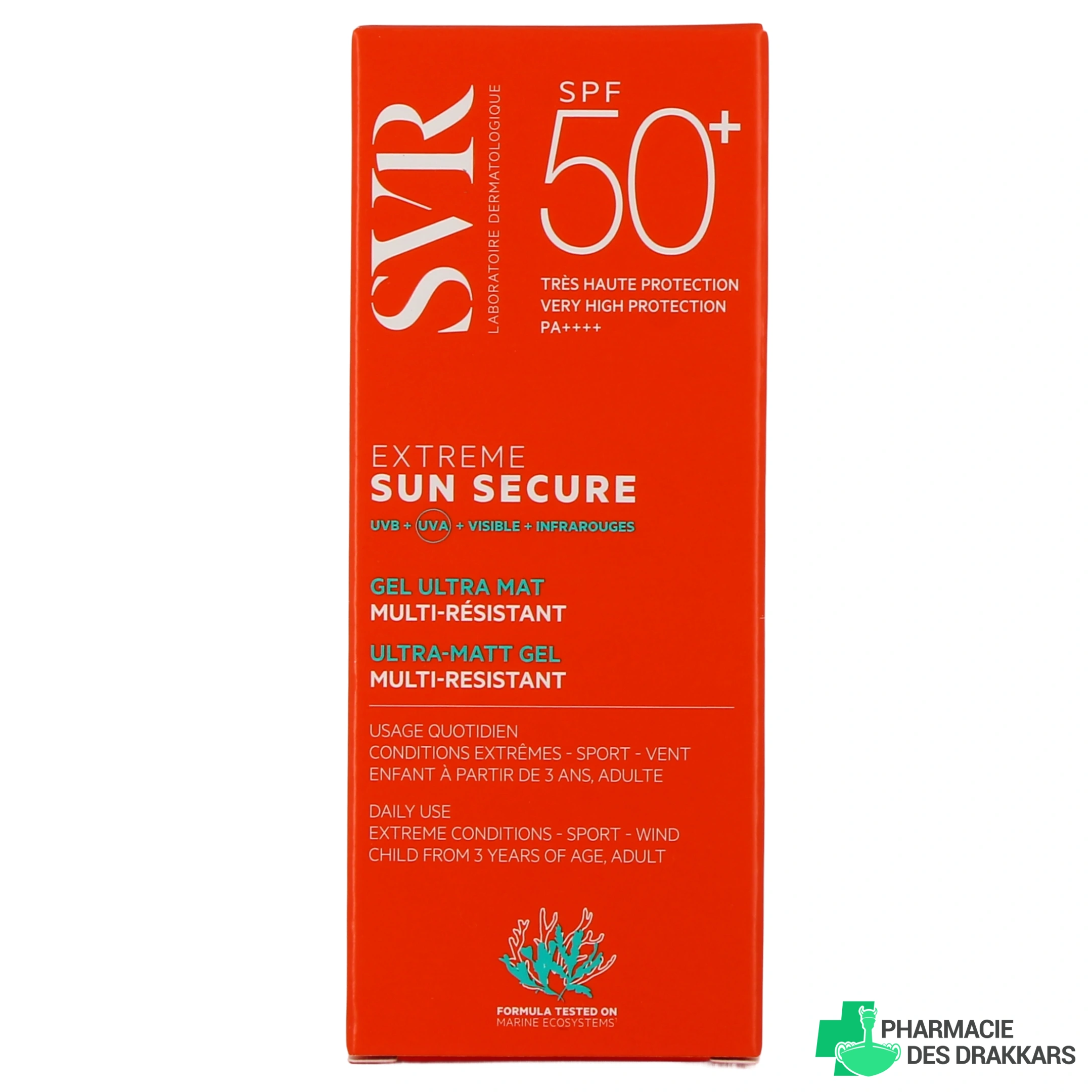 Sun Secure Extrême SPF 50+ est une protection solaire de la marque SVR. Multi-résistant et ultra-mat, il est idéal pour les activités sportives en extérieur et les conditions extrêmes.