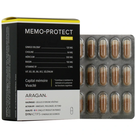 Memo Protect est un complément alimentaire de la marque Synactifs ciblant le capital mémoire et la vivacité. Il contribue à maintenir la mémoire et à préserver les fonctions cognitives.