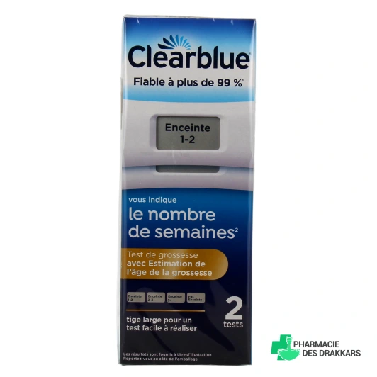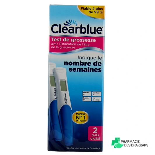 Découvrez sur le site de la Pharmacie des Drakkars le seul test digital qui vous indique le nombre de semaines depuis la conception : le test de grossesse Clearblue Digital ! Il est le premier test du marché à estimer l'âge de la grossesse en semaines et présente un résultat clair.