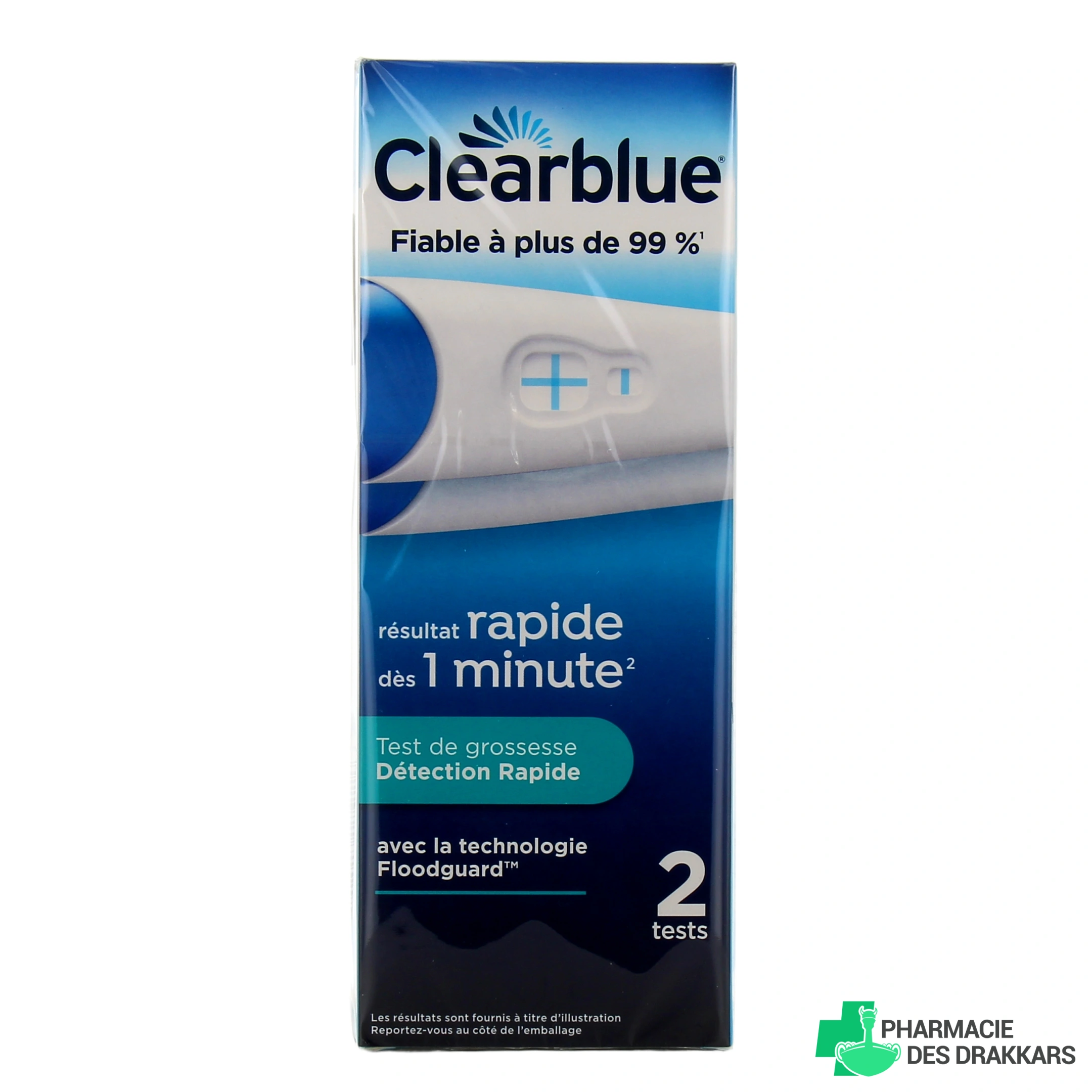 Le test de grossesse Clearblue Détection Rapide est conçu pour être le test le plus facile d'utilisation possible à domicile grâce à sa large tige et sa poignée ergonomique. Avec la précision attendue de Clearblue, un résultat « Enceinte » peut s'afficher en une minute seulement lorsque le test est effectué dès le premier jour de retard des règles. Vous devez attendre 3 minutes pour confirmer un résultat « Pas enceinte ». Le test Clearblue Détection rapide est fiable à plus de 99 % dès la date présumée de vos menstruations et peut être utilisé jusqu'à 5 jours avant votre retard de règles (soit 4 jours avant la date prévue du cycle).