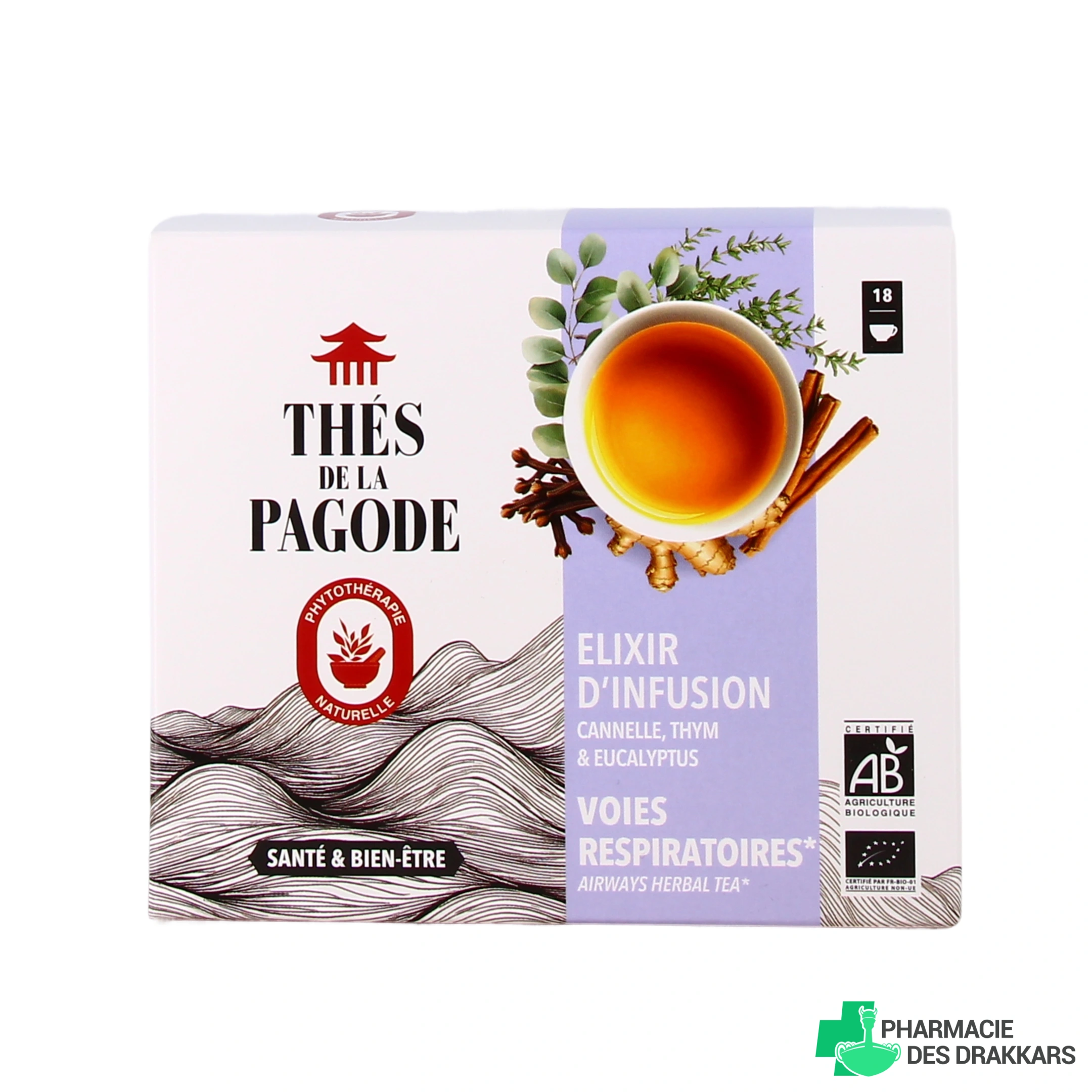 Vous pourrez retrouver l'elixir d'infusion voies respiratoires Bio des Thés de la Pagode dans les présentations suivantes chez Pharmacie des Drakkars :