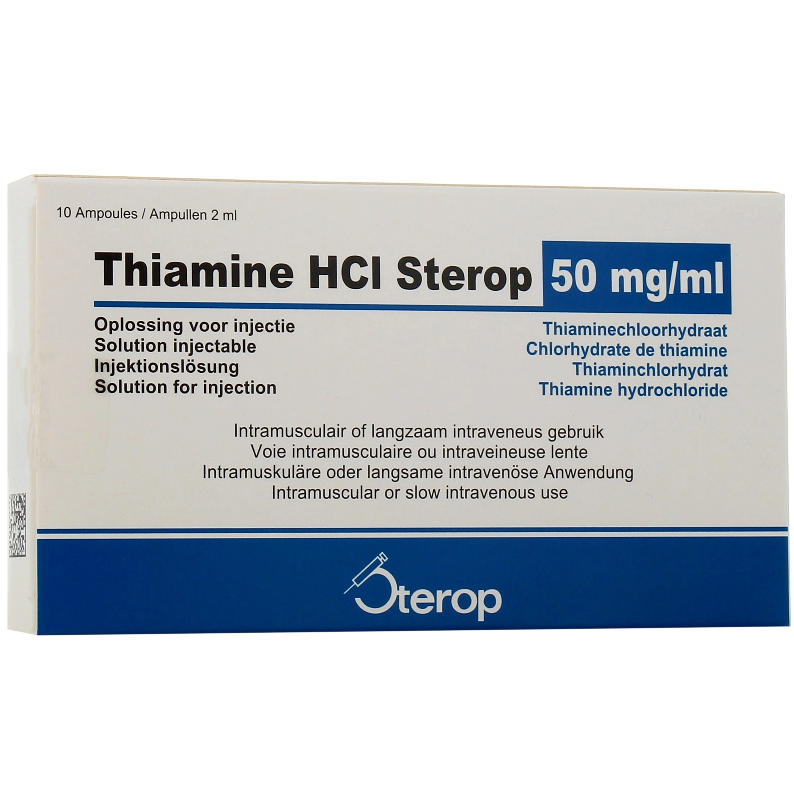 Thiamine HCI Sterop 50mg/ml est un médicament à base de chlorydrate de thiamine indiqué chez l'adulte dans le traitement préventif et curatif des carences en vitamine B1, lorque la prise par voie orale n'est pas possible.