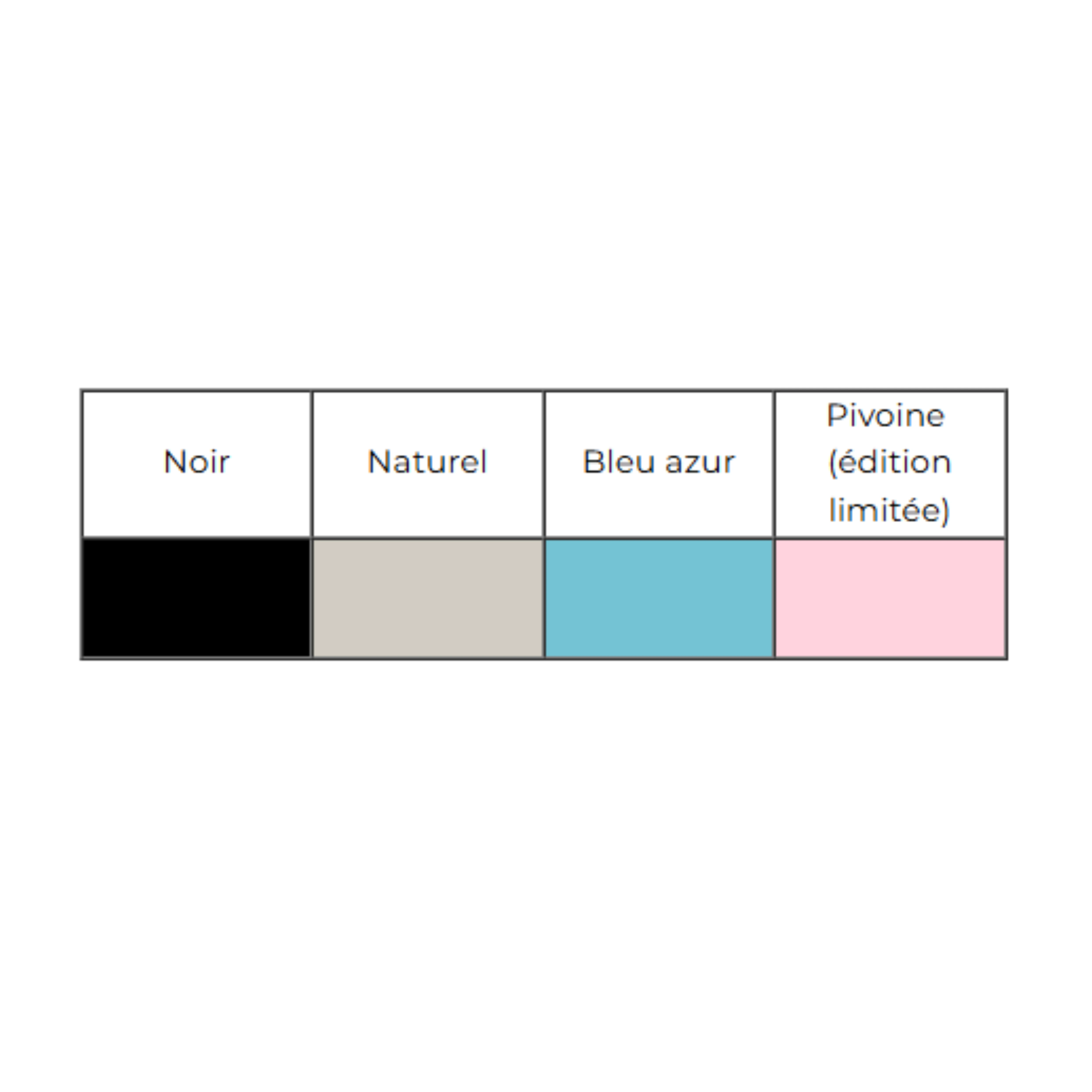 Couleurs disponibles: Lignes naturel, Lignes noir, Bleu Azur et Pivoine. Elles existent également en modèle homme.