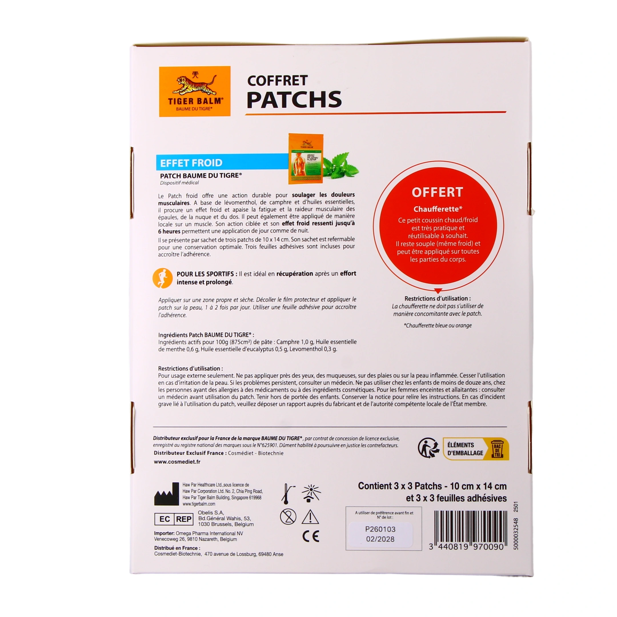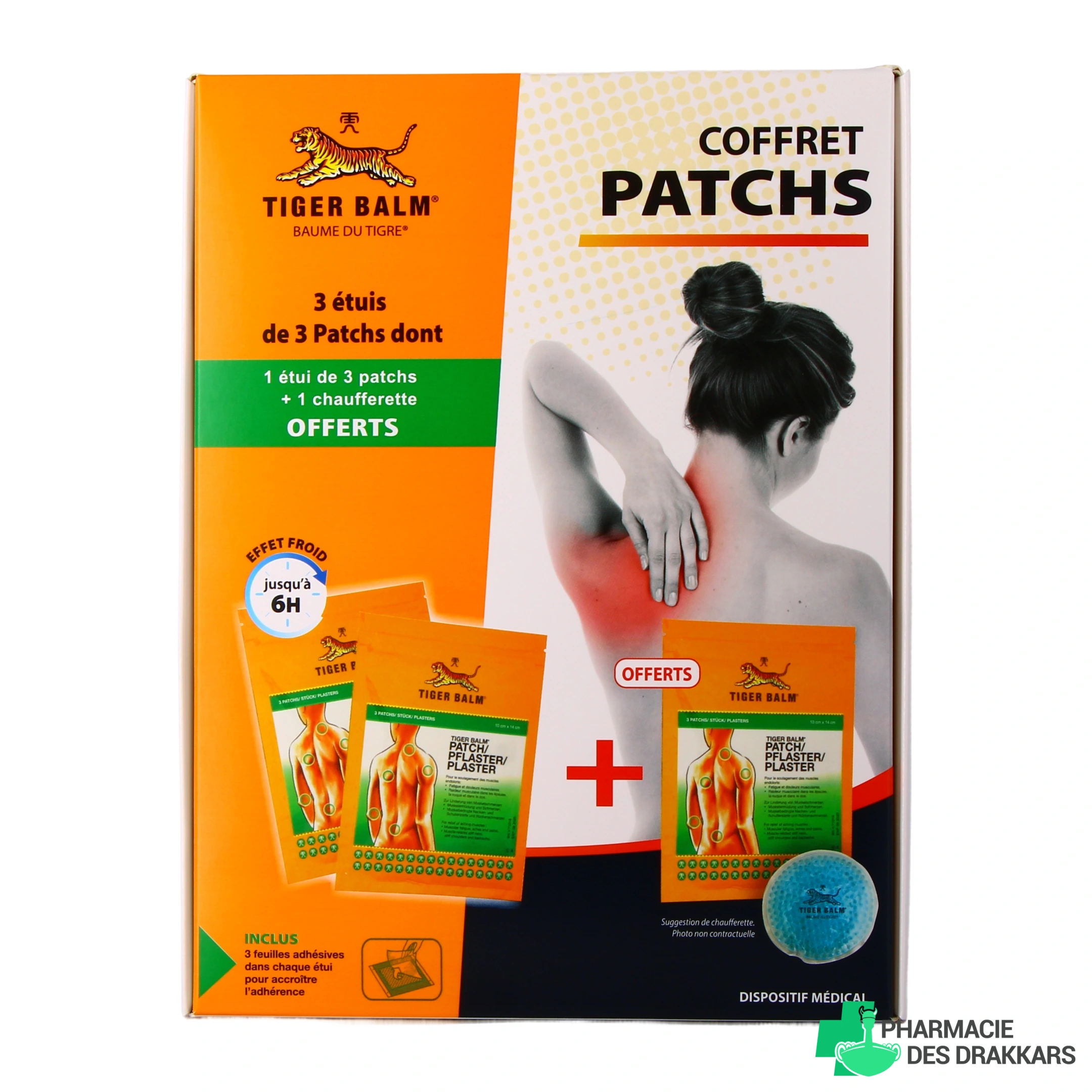 - Coffret de 3 étuis de 3 patchs (dont 1 offert) + 1 chaufferette Cadeau (sous réserve de disponibilité)
