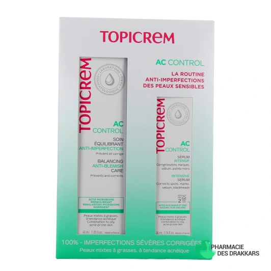 Destiné aux peaux mixtes à grasses, à tendance acnéique, le sérum intensif AC Control de la marque Topicrem est un sérum visage qui corrige boutons, marques, excès de sébum et points noirs. Il est efficace dès 2 nuits !