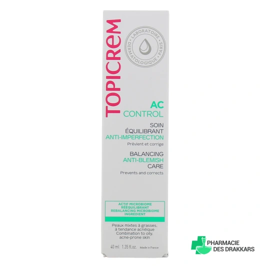 Présentation disponible pour le soin équilibrant anti-imperfection Topicrem AC Control sur notre pharmacie en ligne : Tube de 40 ml